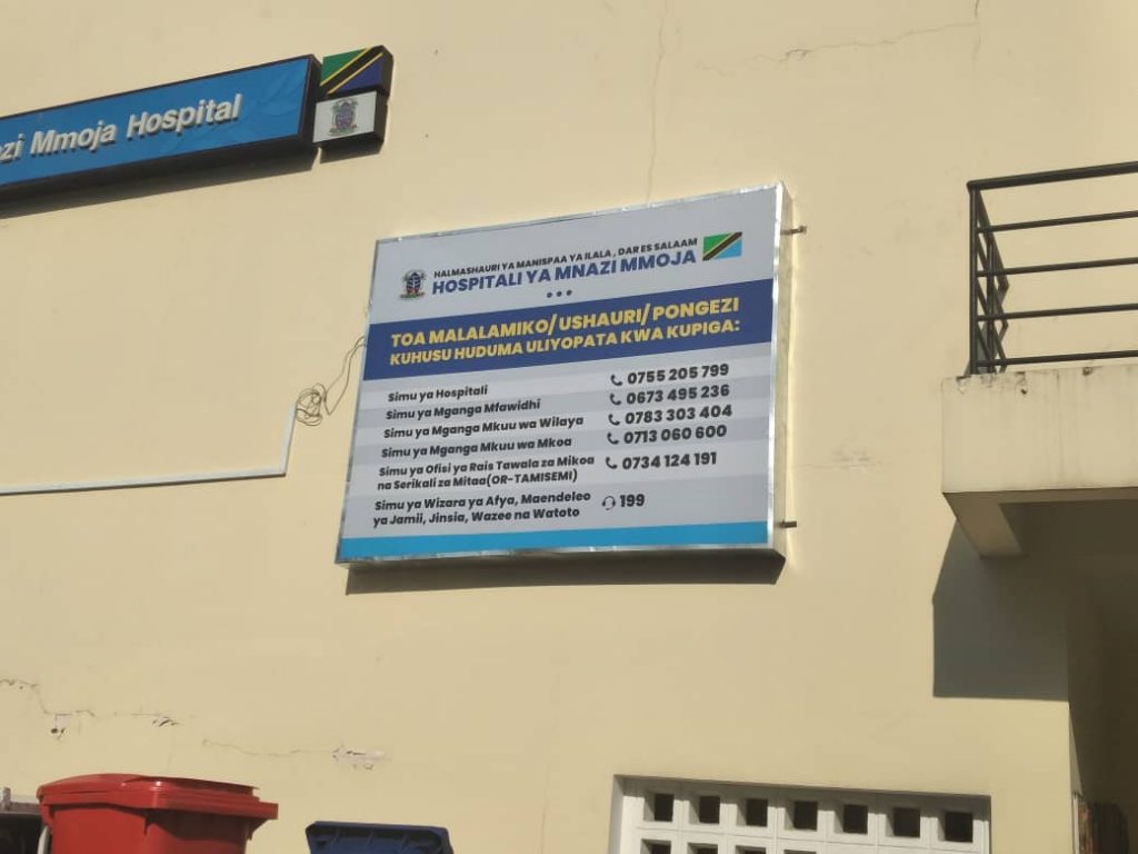 Hospital ya Mnazi Mmoja ya Tekeleza Agizo la Naibu Katibu Mkuu anayeshughulikia maswala ya Afya Ofisi ya Rais, Tawala za Mikoa na Serikali za Mitaa ( TAMISEMI) Dkt. Dorothy Gwajima la kuweka namba za Huduma kwa Wateja ili wananchi kuwasilisha kero na kutatuliwa kwa wakati.