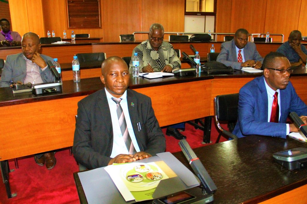 Mkurugenzi wa Utafiti,Mafunzo na Ugani kutoka wizara ya mifugo Dkt.Angello Mwillawa (wa kwanza kutoka kushoto) akifatilia uzinduzi wa Bodi ya Wakala wa Vyuo vya Mafunzo , Bodi ya Hifadhi ya Bahari, Maeneo Tengefu na Bodi ya Baraza la Veterinali iliyofanyika leo jijini Dodoma.