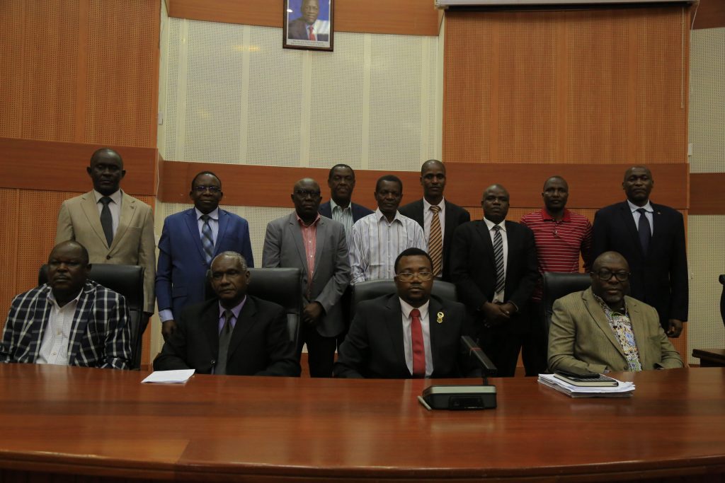 Waziri wa Mifugo na Uvuvi, Mhe. Luhaga Mpina akiwa katika picha ya pamoja mara baada ya kuzindua Bodi ya Wakala wa Vyuo vya Mafunzo , Bodi ya Hifadhi ya Bahari, Maeneo Tengefu na Bodi ya Baraza la Veterinali iliyofanyika leo jijini Dodoma.