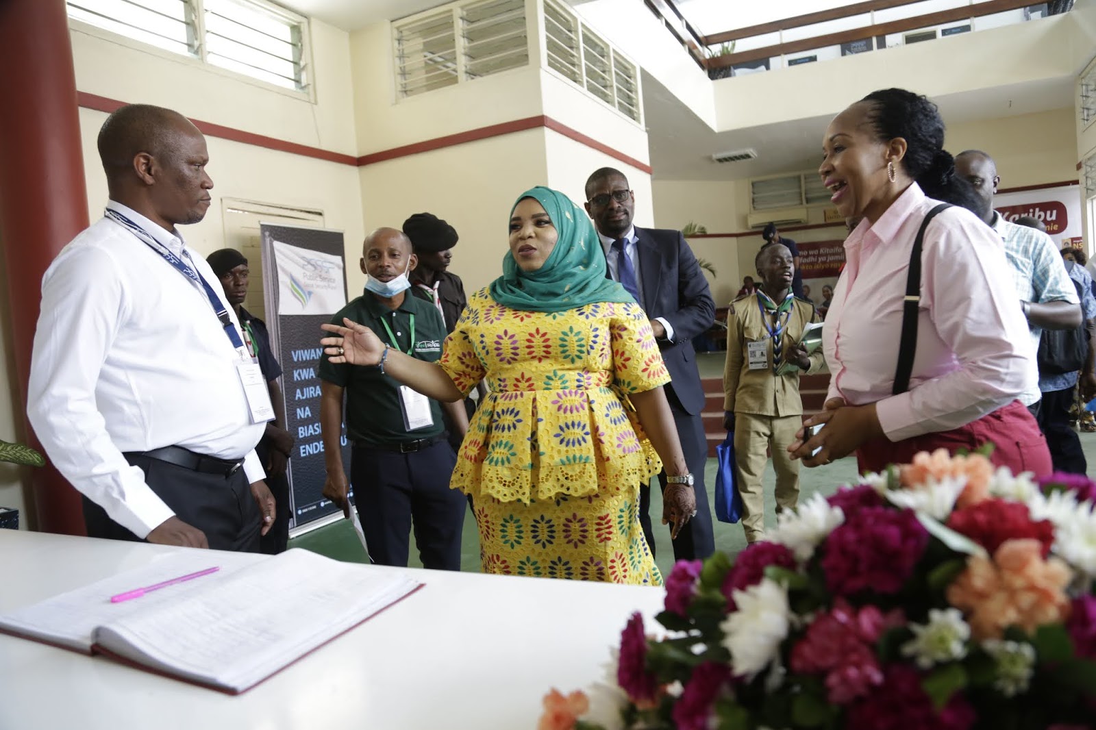 MKURUGENZI Mwendeshaji wa FUKO wa Hifadhi ya Jamii Zanzibar (ZSSF) Bi. Sabra Issa Machano amefurahishwa na namna mifuko ya Hifadhi ya Jamii kwa Watumishi wa Umma (PSSSF) na ule wa NSSF kutumia banda moja katika maonesho ya 44 ya biashara ya kimataifa ya Dar es Salaa wakati alipotembelea banda hilo Julai 7, 2020.