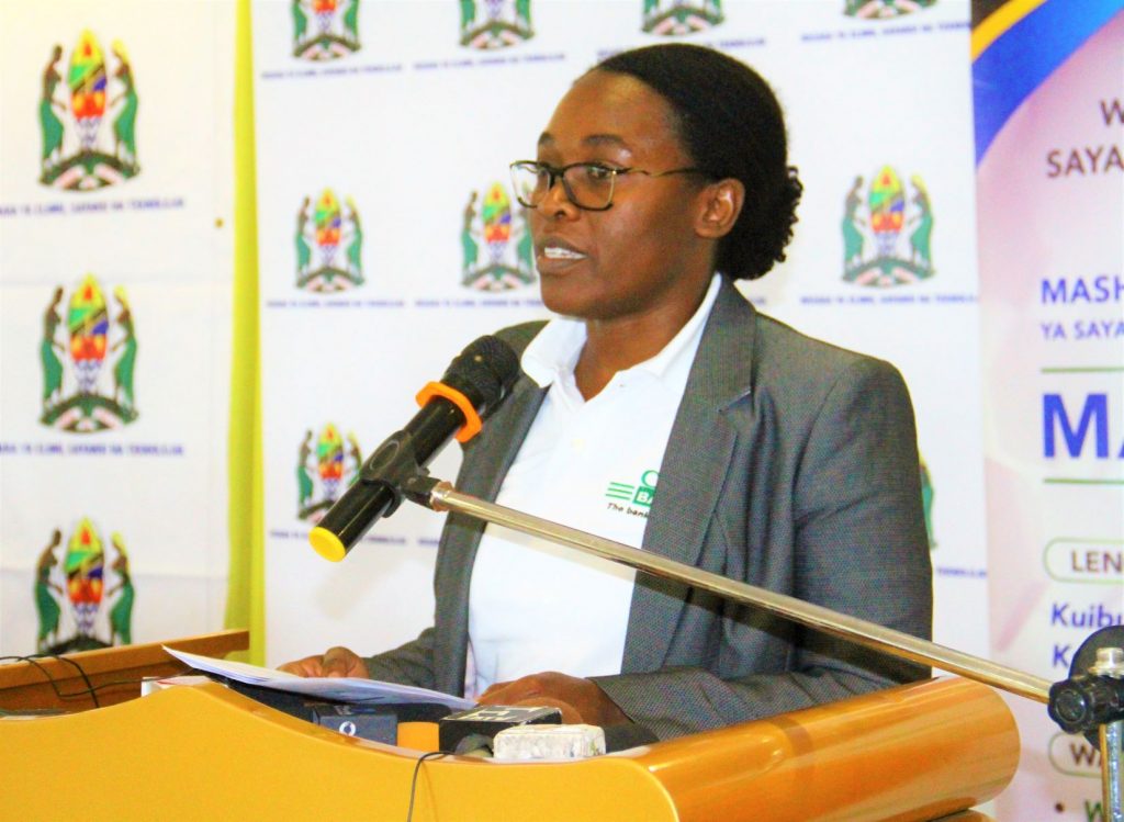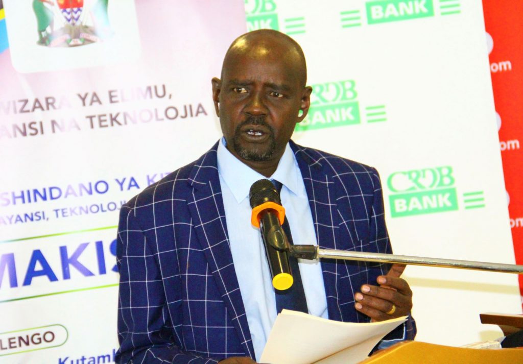 Meneja wa Kanda ya Kati CRDB Benki, Chabu Mishwaro akitoa akieleza mchango wa CRDB katika kufanyikisha zawadi kwa washindi 21 wa Mashindano ya Kitaifa ya Sayansi, Teknolojia na Ubunifu (Makisatu) kwa mwaka 2020 hafla hiyo imefanyika leo jijini Dodoma.