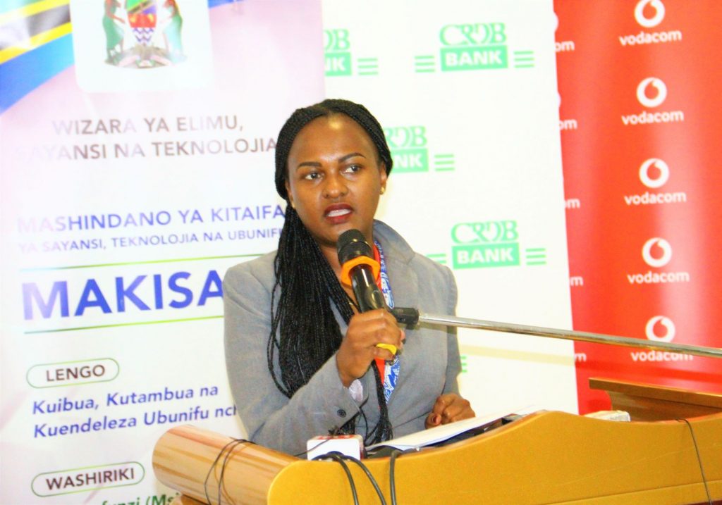 Mkurugenzi Mkuu wa Kanda ya Kati VODACOM, Grace Chambua akitoa neno wakati wa kukabidhi zawadi kwa washindi 21 wa Mashindano ya Kitaifa ya Sayansi, Teknolojia na Ubunifu (Makisatu) kwa mwaka 2020 hafla hiyo imefanyika leo jijini Dodoma.