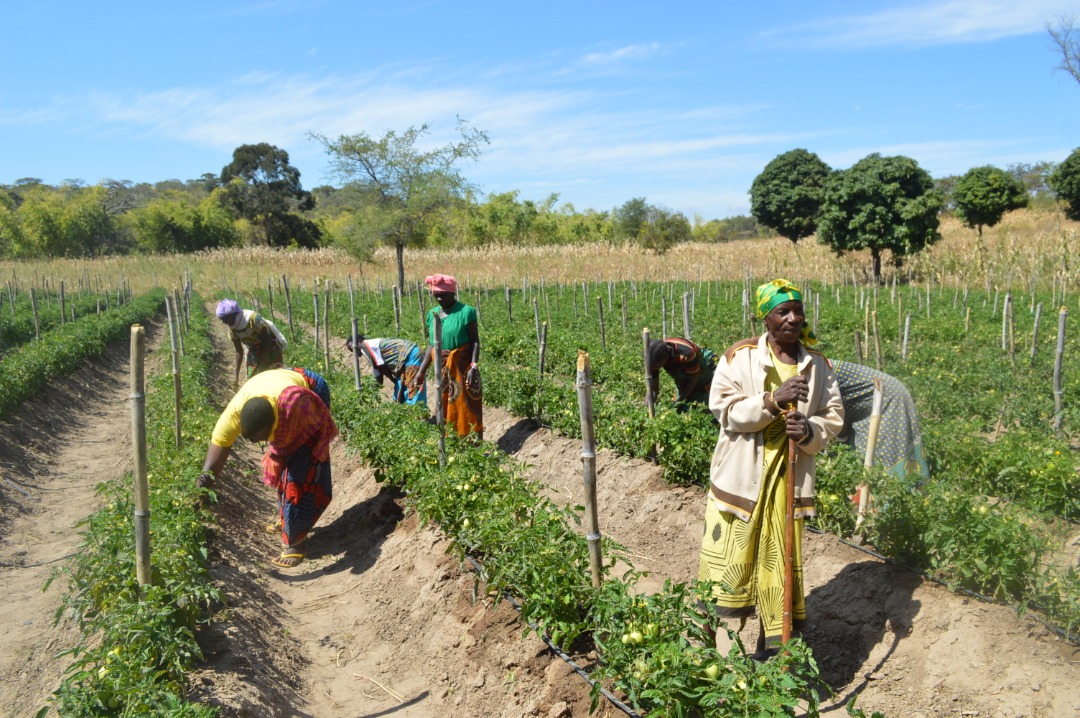 Wanawake wa kikundi cha akina mama Wajane cha kijiji cha Iyela wakiwa kwenye shamba la nyanya