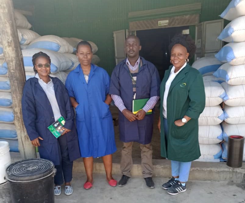 Mhandisi Mtafiti TANESCO Aurea Bigirwamungu (kwanza kulia) akiwa na watumishi wa TANESCO katika Kiwanda cha Mchele na Alizeti wilayani Dodoma.