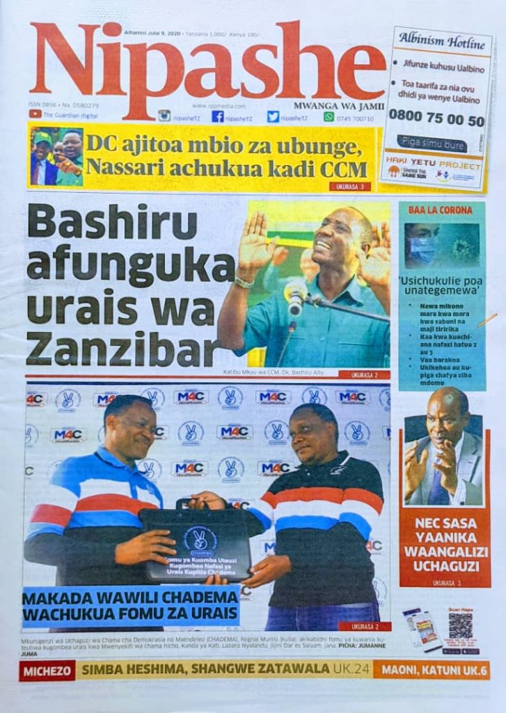 MagazetiPITIA VICHWA VYA HABARI KATIKA MAGAZETI YA LEO JULY 9,2020 Last updated: 2020/07/09 at 3:52 AM Alex Sonna 5 years ago Share SHARE Alex Sonna July 9, 2020 July 9, 2020 Share this Article Facebook Twitter Email Print Previous Article JAFO AWATAKA WAKUU WA IDARA KUANDIKA BARUA ZA KUJIELEZA Next Article LIVERPOOL YAICHAPA 3-1 BRIGHTON & HOVE ALBION