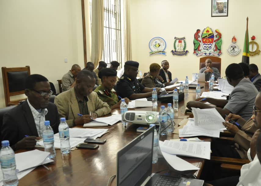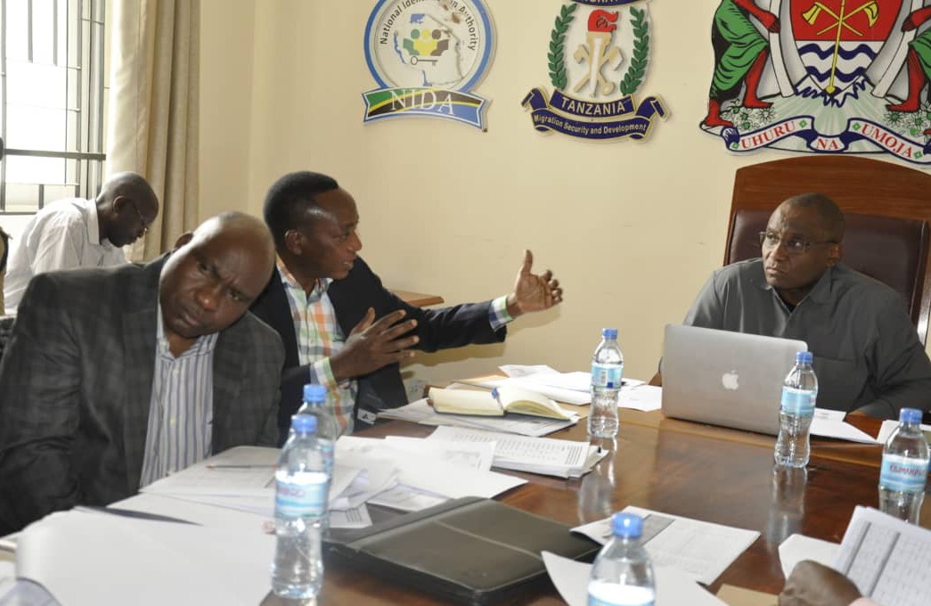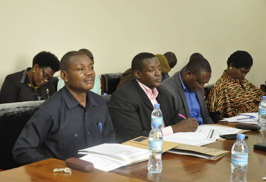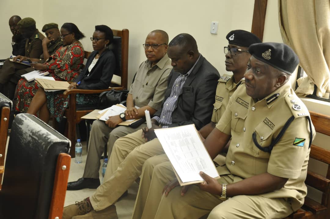 Kaimu Mkurugenzi wa Kitengo cha Ununuzi na Ugavi, Peter Bundala (Wa pili Kushoto) akifafanua jambo kwa Katibu Mkuu wa Wizara ya Mambo ya Ndani ya Nchi, Christopher Kadio (Wa kwanza Kulia) katika Kikao cha Menejimenti ya Wizara hiyo Kupitisha Mpango wa Ununuzi wa Mwaka 2020/2021. Kikao hicho kilichoshirikisha Wakuu wa Idara, Vitengo na Maafisa wa Vyombo vya Ulinzi na Usalama vilivyomo ndani ya Wizara hiyo kimefanyika leo katika Ukumbi wa Mikutano wa Wizara hiyo Mtumba, Jijini Dodoma.