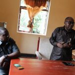 Mtia nia ya Ubunge jimbo la Vunjo akisalimiana na Classmet wake nje ya ofisi za CCM wilaya ya Moshi Vijijini mara baada ya kuchukua fomu ya kuwania Ubunge katika jimbo la Vunjo.