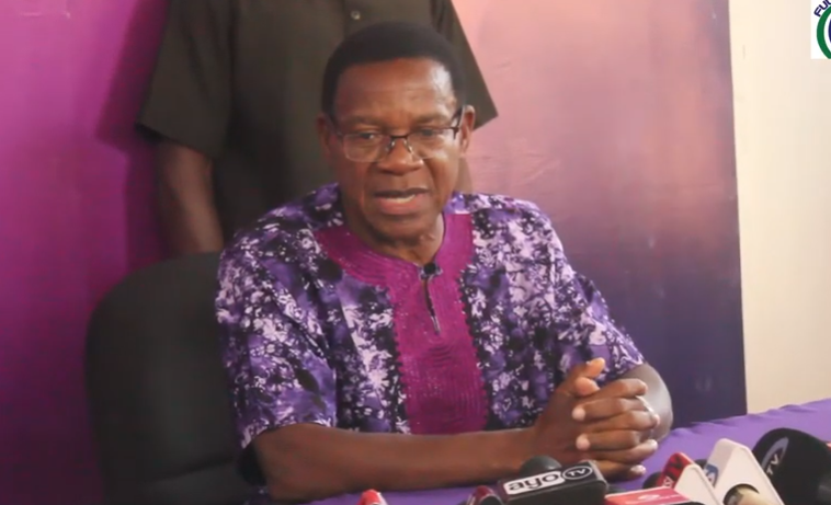 Bw. Bernald Kamilius Membe akisisitiza jambo wakati akizungumza na waandishi wa habari kabla ya kukabidhiwa fomu za kuomba kugombea urais wa Jamhuri ya Muungano wa Tanzania kwa tiketi ya chama cha ACT Wazalendo.