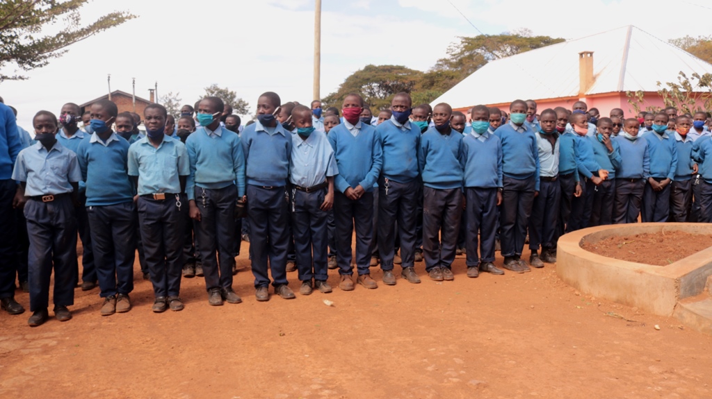 Wanafunzi wa Sekondari ya Wavulana ya Oswe wakimtazama Mkuu wa Mkoa wa Songwe Brig. Jen. Nicodemus Mwangela akiwachapa viboko nane mwanafunzi wa shule hiyo waliochoma moto mabweni ya shule hiyo Julai 3 Mwaka huu na kusababisha hasara ya Zaidi ya shilingi milioni 26.
