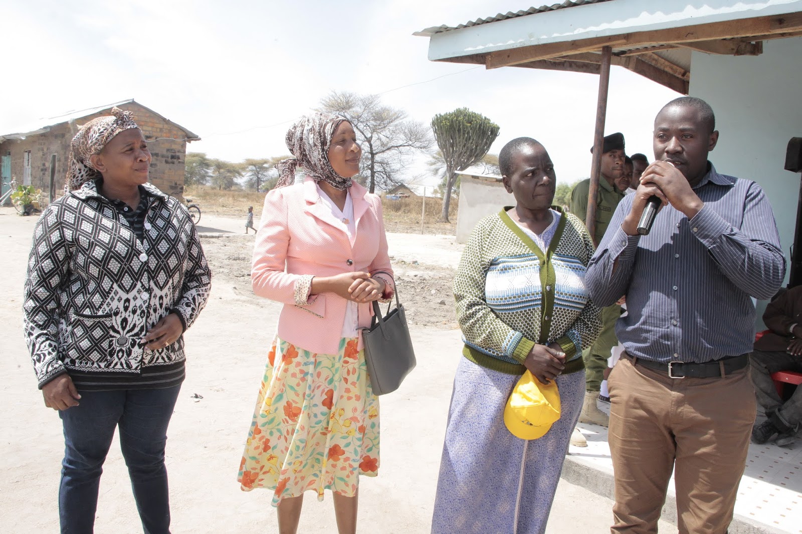 Mkuu wa Wilaya ya Ikungi, Edward Mpogolo, akihutubia katika hafla. Kutoka kulia ni Meneja Mahusiano wa Kanda Biashara na Serikali wa benki hiyo, Peter Masawe, Meneja wa benki hiyo, Wilaya ya Ikungi, Osward Kayuni na Meneja wa Benki ya NMB Kanda ya Kati, Nsolo Mlozi.