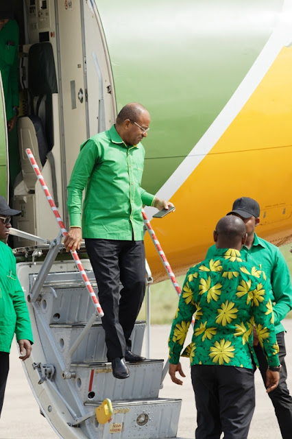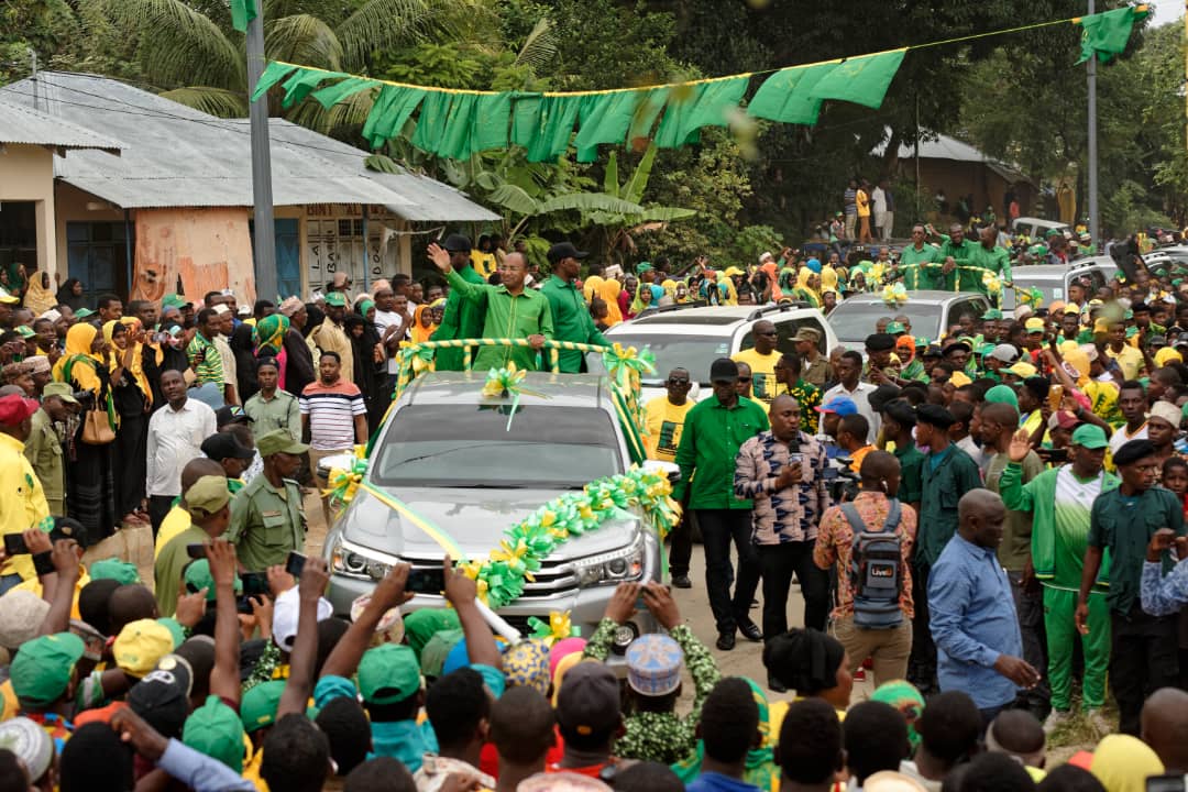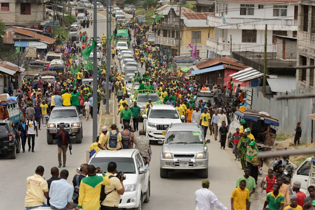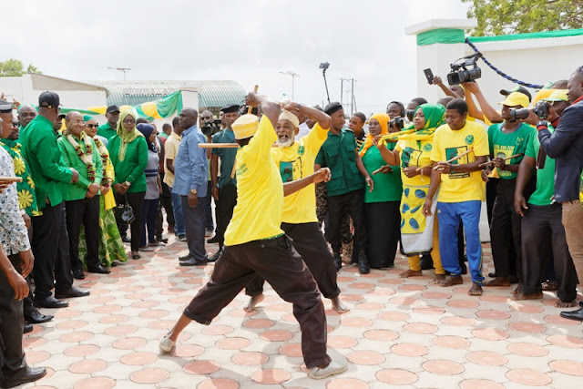 Mapokezi makubwa ya mgombea huyo yalianzia katika Uwanja wa Ndege wa Karume, Mkoa wa Kusini Pemba na kupita Barabara Kuu kuelekea Viwanja vya Tibirinzi akiwa katika gari la wazi, huku akisindikizwa na umati wa watu wenye sare za CCM na wengine wakimpungia mikono kando ya barabara.