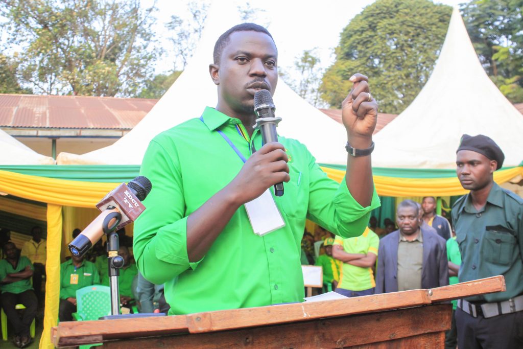 Waziri wa Viwanda na Biashara Mhe. Innocent Bashungwa akiwashukuru wajumbe wa mkutano mkuu mara baada ya kutangazwa mshindi wa kura za maoni wakati wa mkutano mkuu wa Chama cha Mapinduzi jimbo la Karagwe Mkoani Kagera