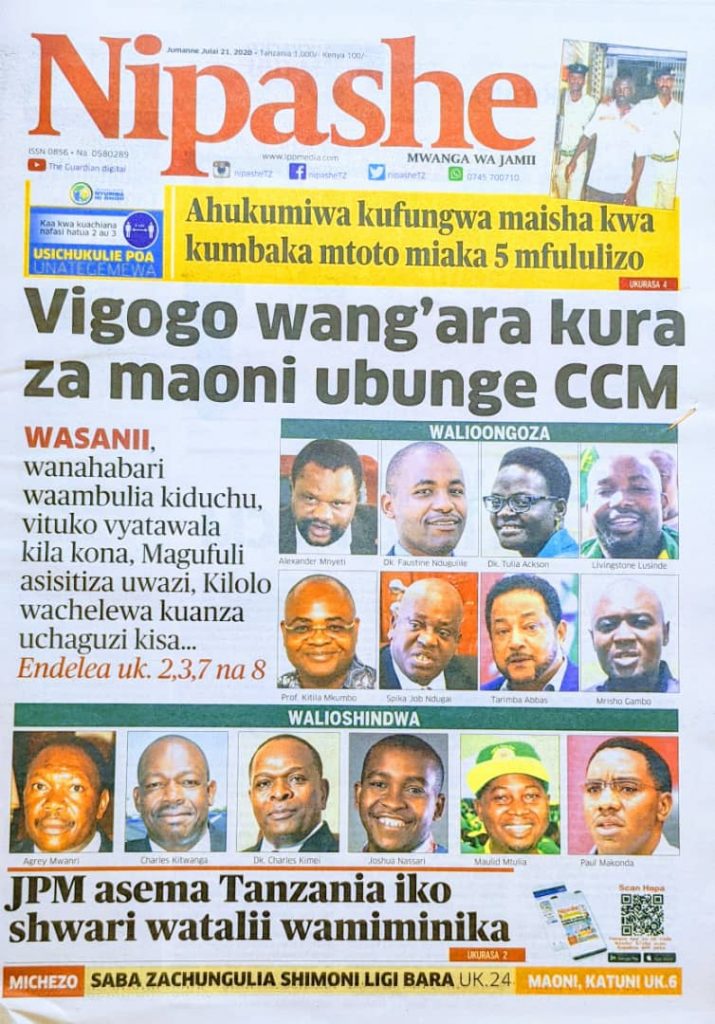 MagazetiPITIA VICHWA VYA HABARI KATIKA MAGAZETI YA LEO JULY 21,2020 Last updated: 2020/07/21 at 3:42 AM Alex Sonna 5 years ago Share SHARE Alex Sonna July 21, 2020 July 21, 2020 Share this Article Facebook Twitter Email Print Previous Article RIDHIWANI KIKWETE ,JUMAA,JAFO,MCHENGERWA NA ULEGA WAIBUKA KIDEDEA KURA ZA MAONI MKOANI PWANI Next Article BASHUNGA AIBUKA KIDEDEA KURA ZA MAONI JIMBO LA KARAGWE