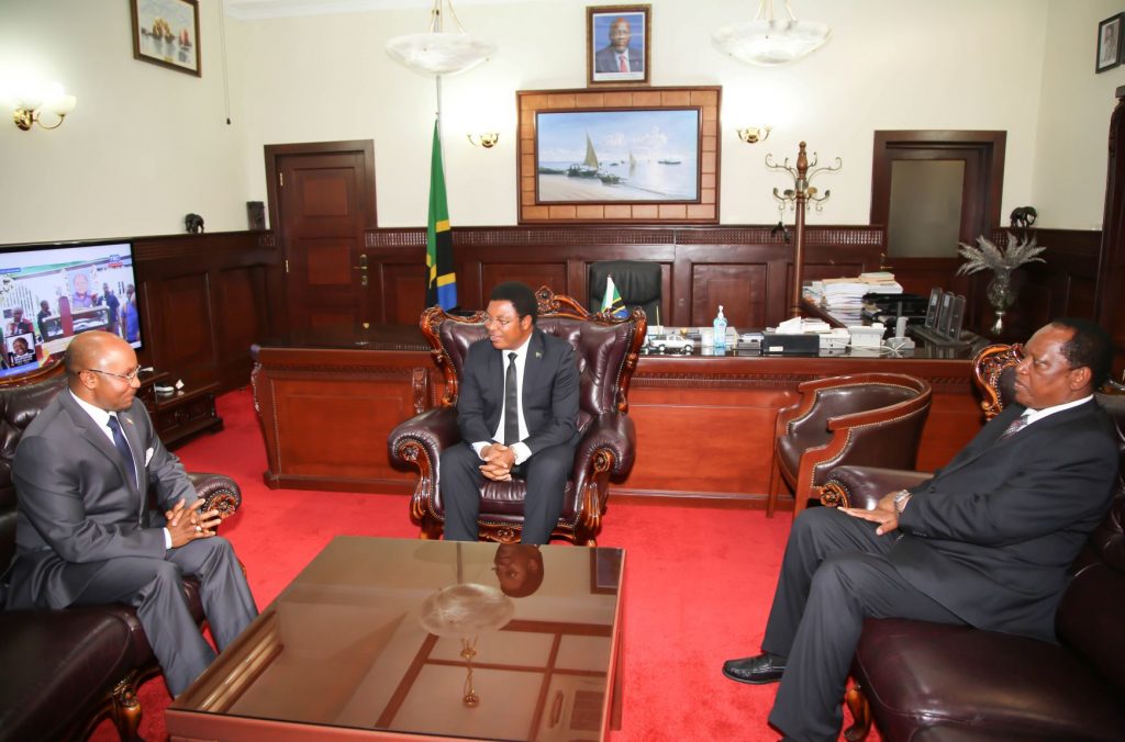 Waziri Mkuu Kassim Majaliwa akizungumza na Waziri Mkuu wa Burundi Jenerali Alain Guillaume (Kushoto). Waziri Mkuu wa Burundi alifika leo Julai 27, 2020 Ofisi ndogo za Waziri Mkuu, Magogoni Jijini Dar es Salaam kwa ajili ya kuwasilisha salamu za pole kutoka kwa Rais na Wananchi wa Jamhuri ya Burundi kwa Rais wa Jamhuri ya Muungano wa Tanzania Dkt. John Pombe Magufuli na watanzania kufuatia kifo cha Rais wa Awamu ya Tatu Benjamin William Mkapa, Kulia ni Waziri wa Mambo ya Nje na Ushirikiano wa Afrika Mashariki Prof. Palamagamba Kabudi. (Picha na Ofisi ya Waziri Mkuu)
