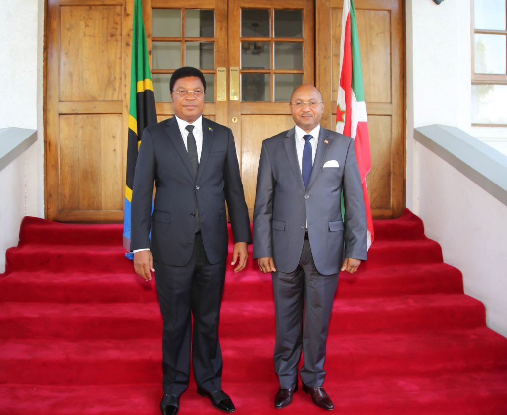 Waziri Mkuu Kassim Majaliwa akiwa katika picha ya pamoja na Waziri Mkuu wa Burundi Jenerali Alain Guillaume , Leo Julai 27, 2020, Jijini Dar es Salaam (Picha na Ofisi ya Waziri. Mkuu)