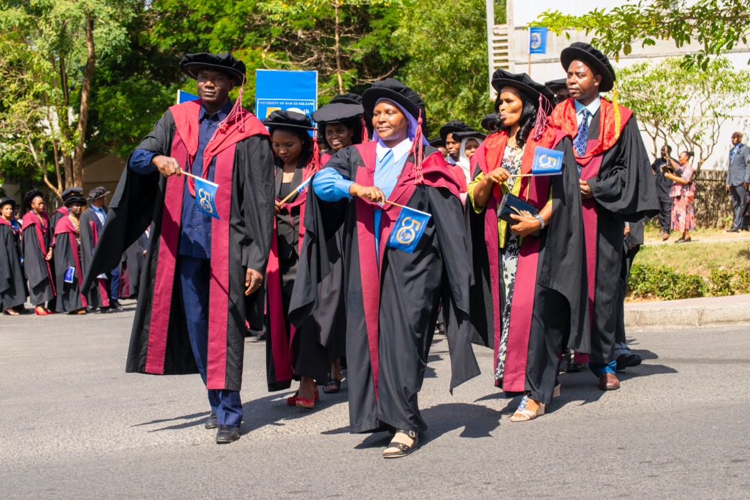 Wahitimu wa Chuo hicho katika Mahafali ya 50 ya digrii ya Uzamili wakiwa kwenye maandamo kuelekea ukumbi wa Nkuruma kwaajili ya sherehe ya 50 ya Kutunuku Digrii za Uzamili.