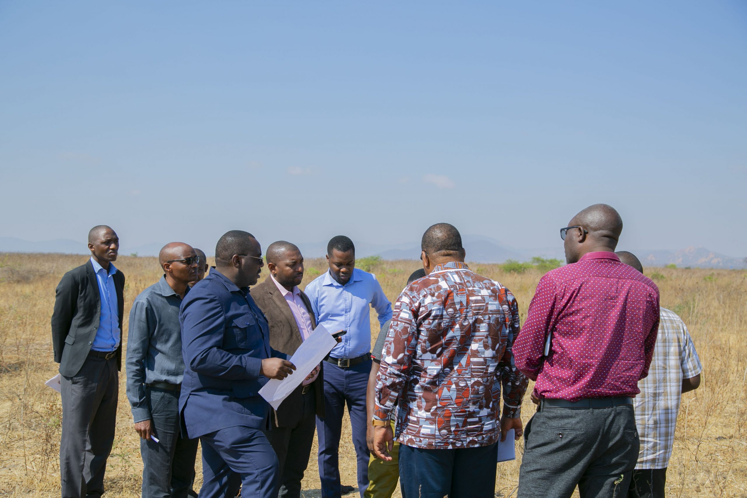 Katibu Mkuu Wizara ya Habari, Utamaduni, Sanaa na Michezo na Msemaji Mkuu wa Serikali Dkt. Hassan Abbasi (aliyeshikilia karatasi lenye ramani ya viwanja) akiwa eneo la Mtuma kukagua viwanja vilivyotolewa na Rais wa Jamhuri ya Muungano wa Tanzania Dkt John Pombe Magufuli kwa wachezaji wa timu ya taifa ya mpira wa miguu (Taifa Stars) leo Agosti 6,2020 jijini Dodoma.