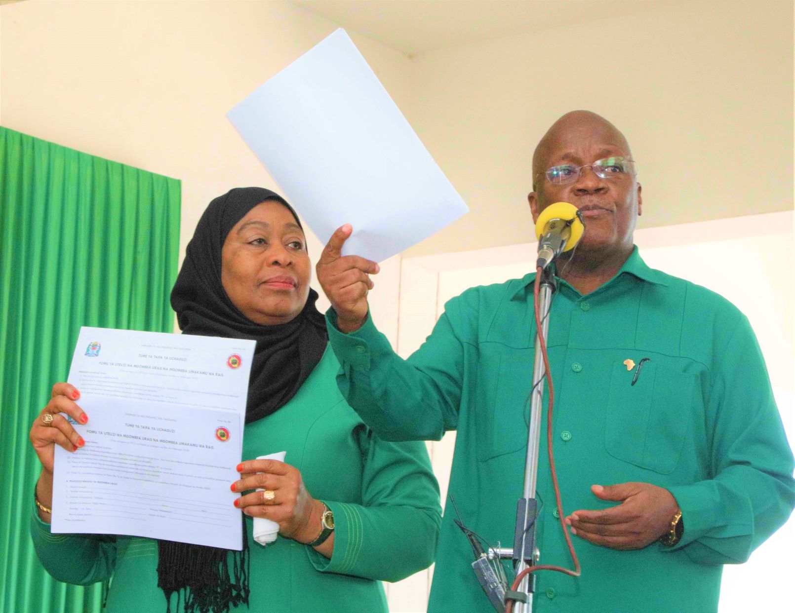 Mwenza katika Uchaguzi Mkuu Mhe Samia Suluhu Hassan wakionesha fomu za