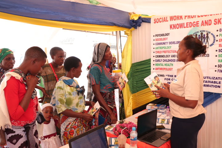 Mhadhiri Msaidizi wa idara Ustawi wa Jamii taaluma wa Taasisi ya Ustawi wa jamii Rufina Khumbe akitoa elimu kwa akinamama wa Bariadi Mkoani Simiyu waliofika katika dawati la Taasisi ya Ustawi wa Jamii kupata huduma