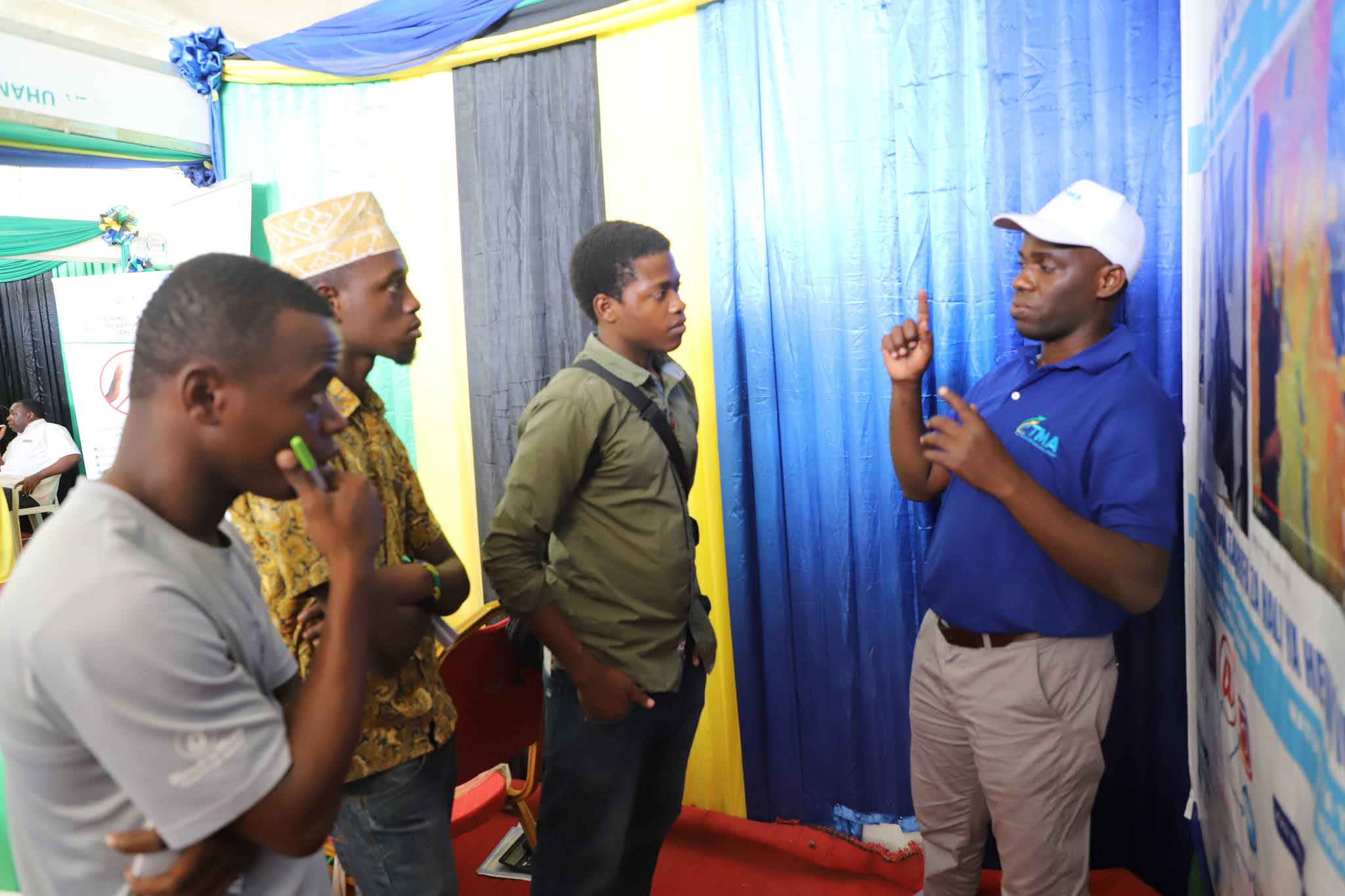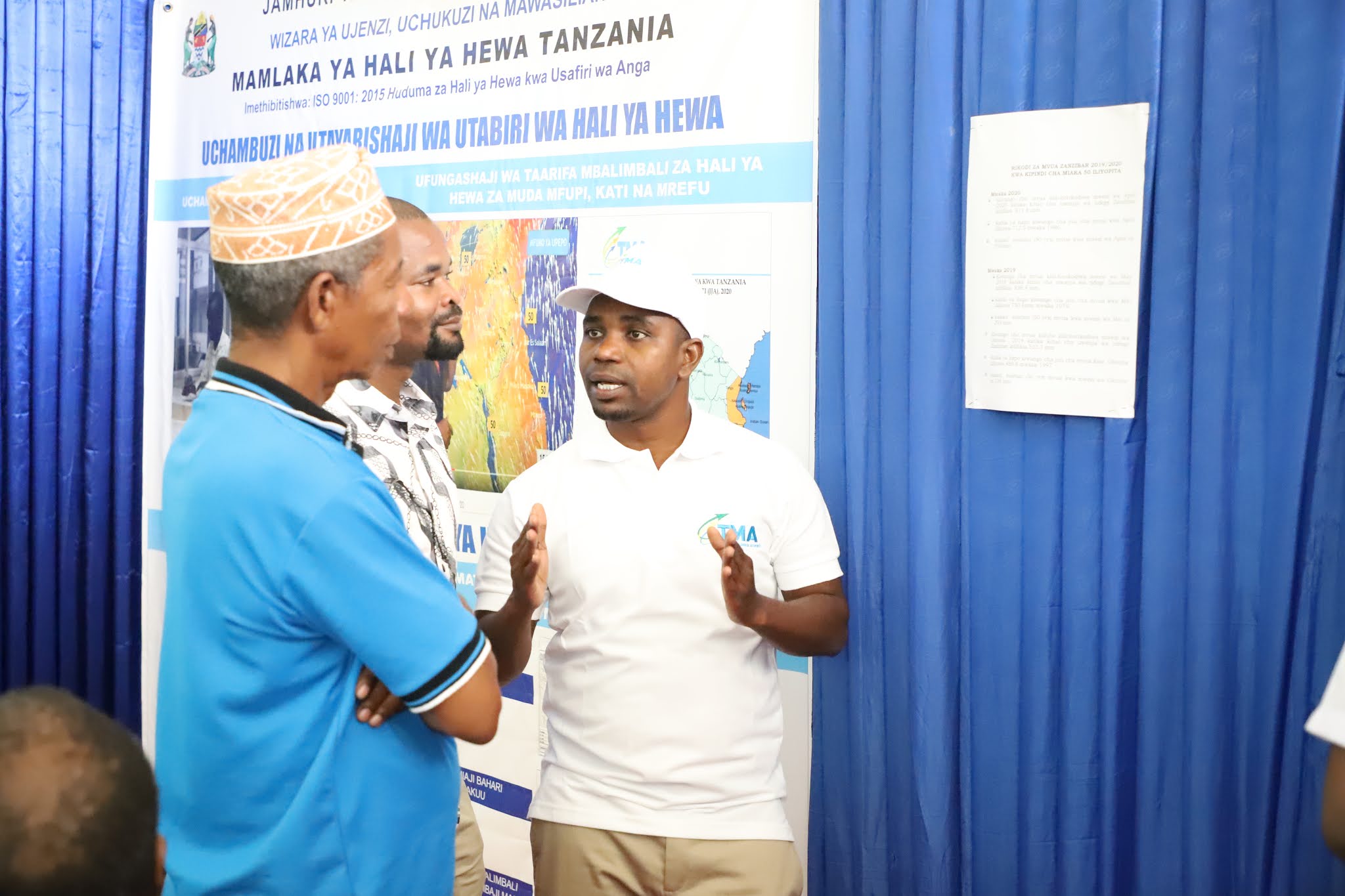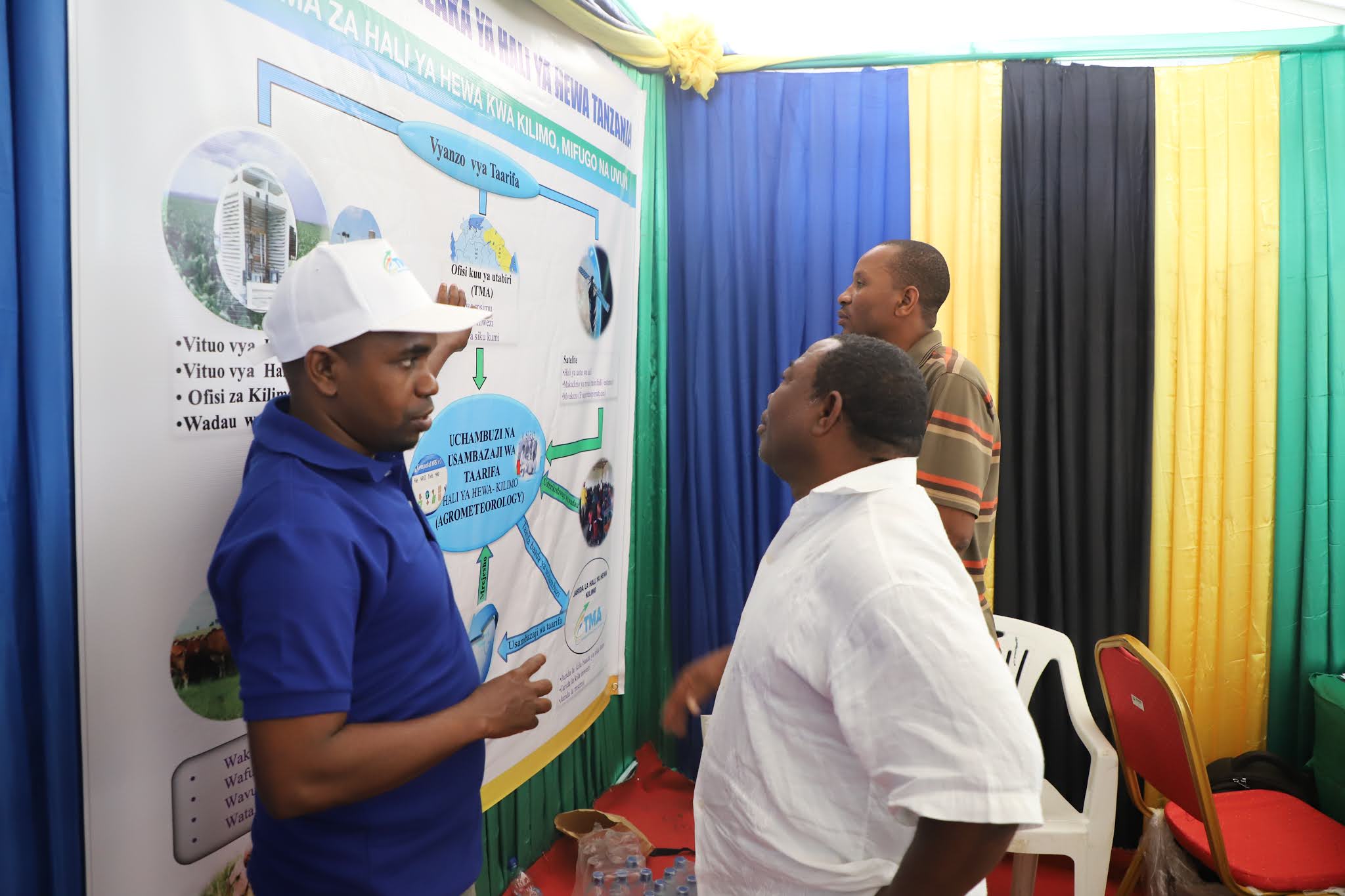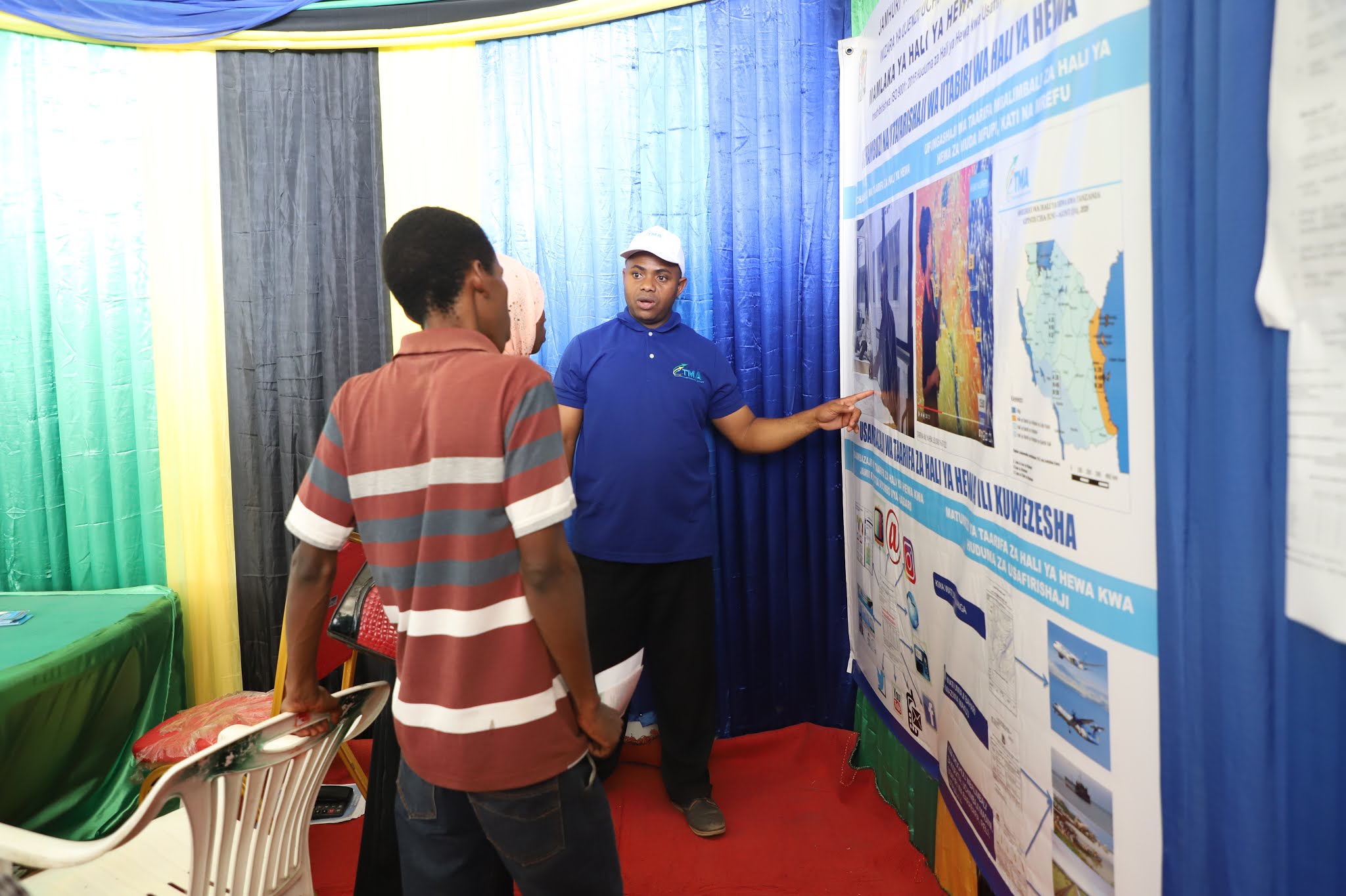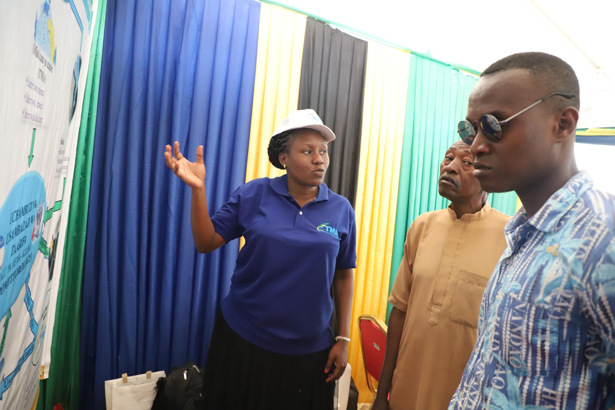 Elimu ikiendelewa kutolewa na waalam wa TMA kwenye banda la Mamlaka ya Hali ya Hewa Tanzania (TMA) lililopo katika maonesho ya Nanenane yanayofanyika viwanja vya Dole, Kizambani – Unguja.