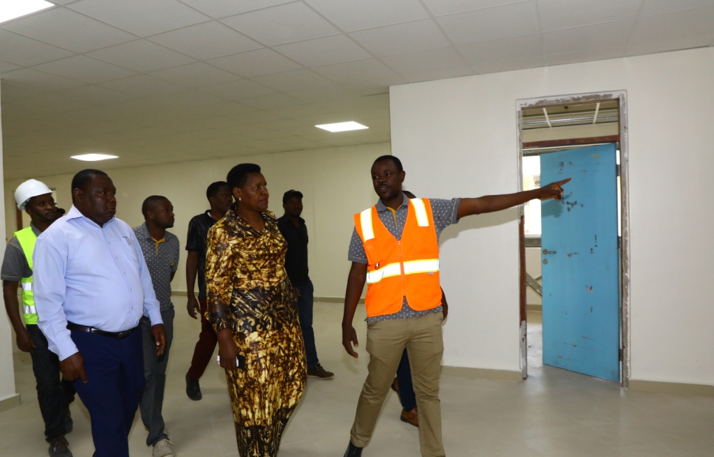 Naibu Waziri wa Ardhi Nyumba na Maendeleo ya Makazi Dkt Angeline Mabula akioneshwa baadhi ya sehemu ambazo ujenzi wake uko katika hatua za mwisho kwenye mradi wa Hospitali ya Rufaa ya mkoa wa Mara na Msimamizi wa mradi huo kutoka Shirika la Nyumba la Taifa (NHC) Mhandisi Renard Kazyoba alipokagua mradi huo akiwa katika ziara yake ya kikazi mkoa wa Mara jana.