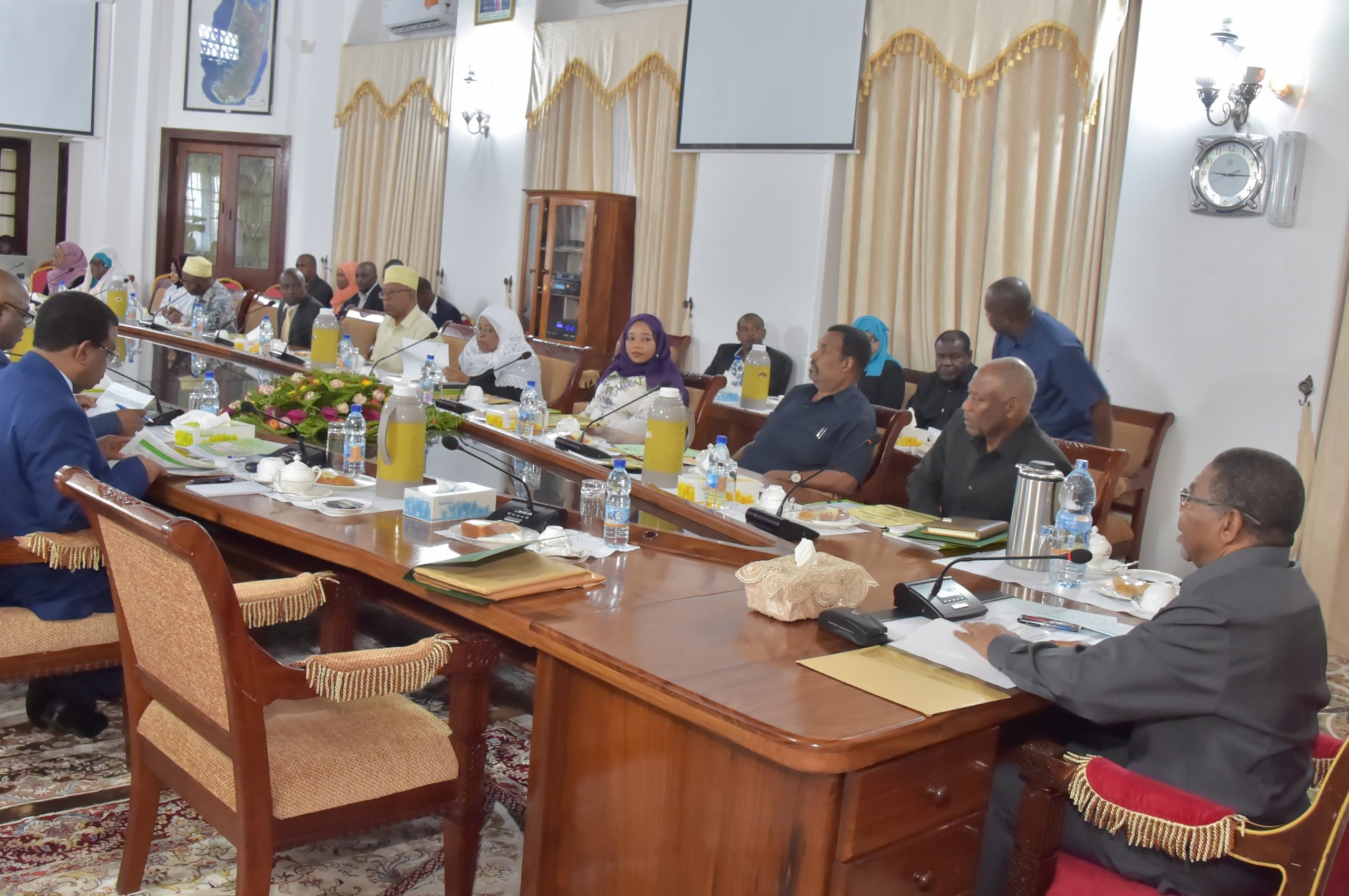 Viongozi katika Wizara ya Vijana,Utamaduni,Sanaa na Michezo wakiwa katika Kikao cha Utekelezaji Mpango kazi wa Mwaka 2020/2021 kilichofanyika leo katika Ukumbi wa Mikutano Ikulu Mjini Zanzibar chini ya Mwenyekiti wake Rais wa Zanzibar na Mwenyekiti wa Baraza la Mapinduzi Dk.Ali Mohamed Shein (hayupo pichani).[Picha na Ikulu] 11/08/2020.