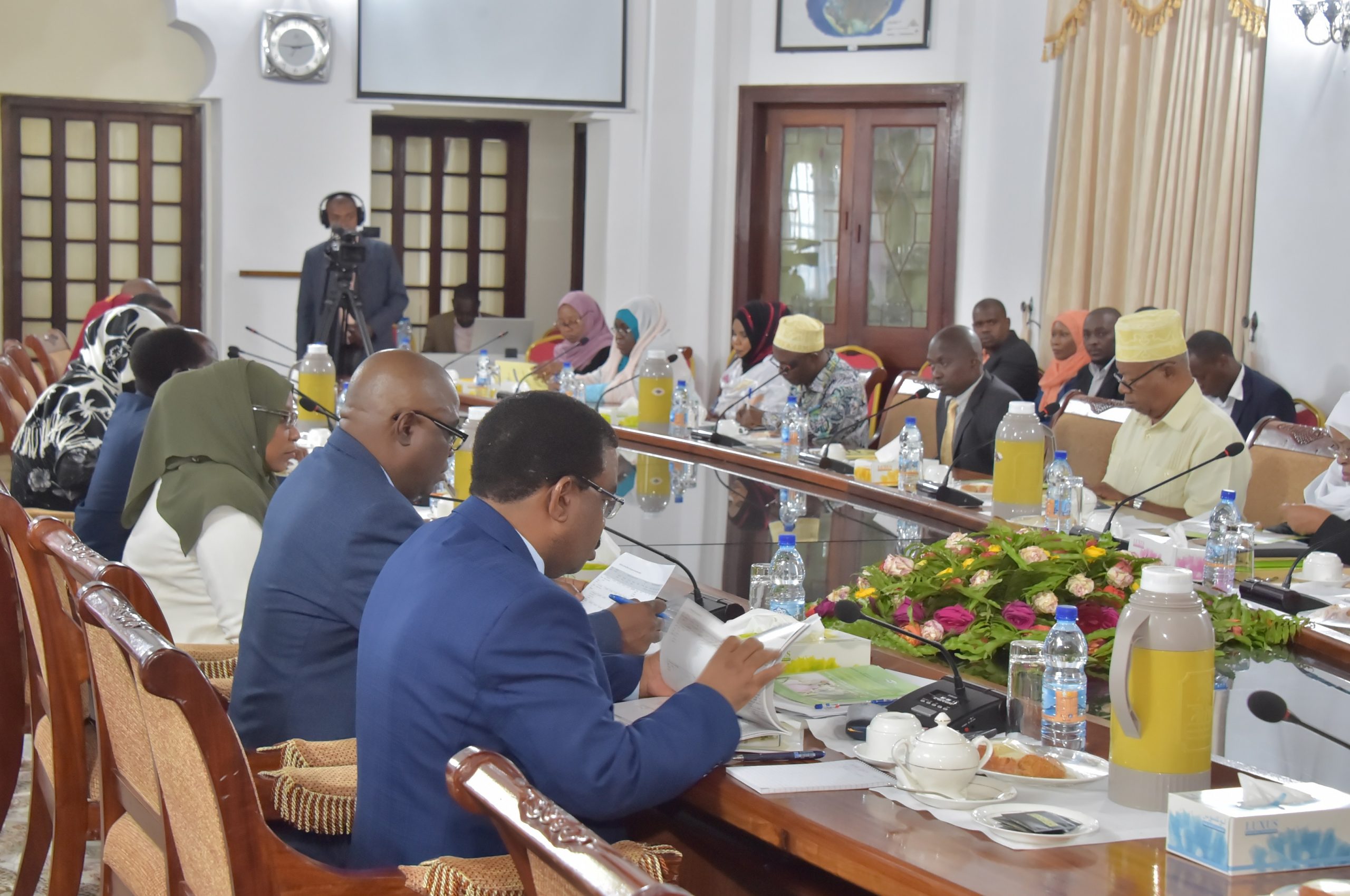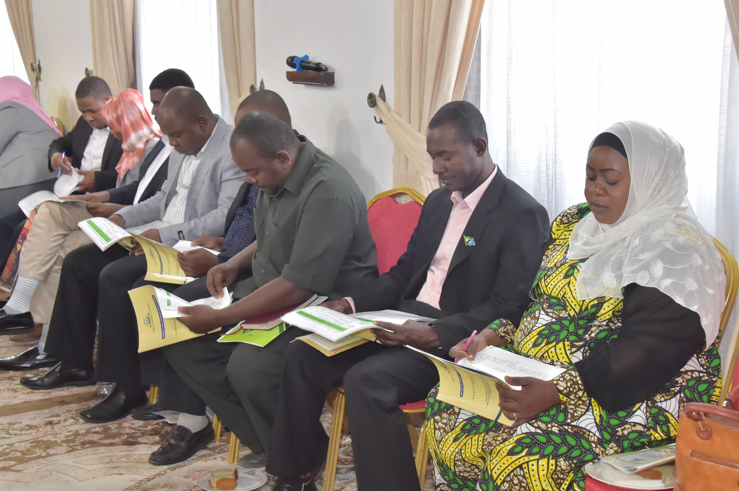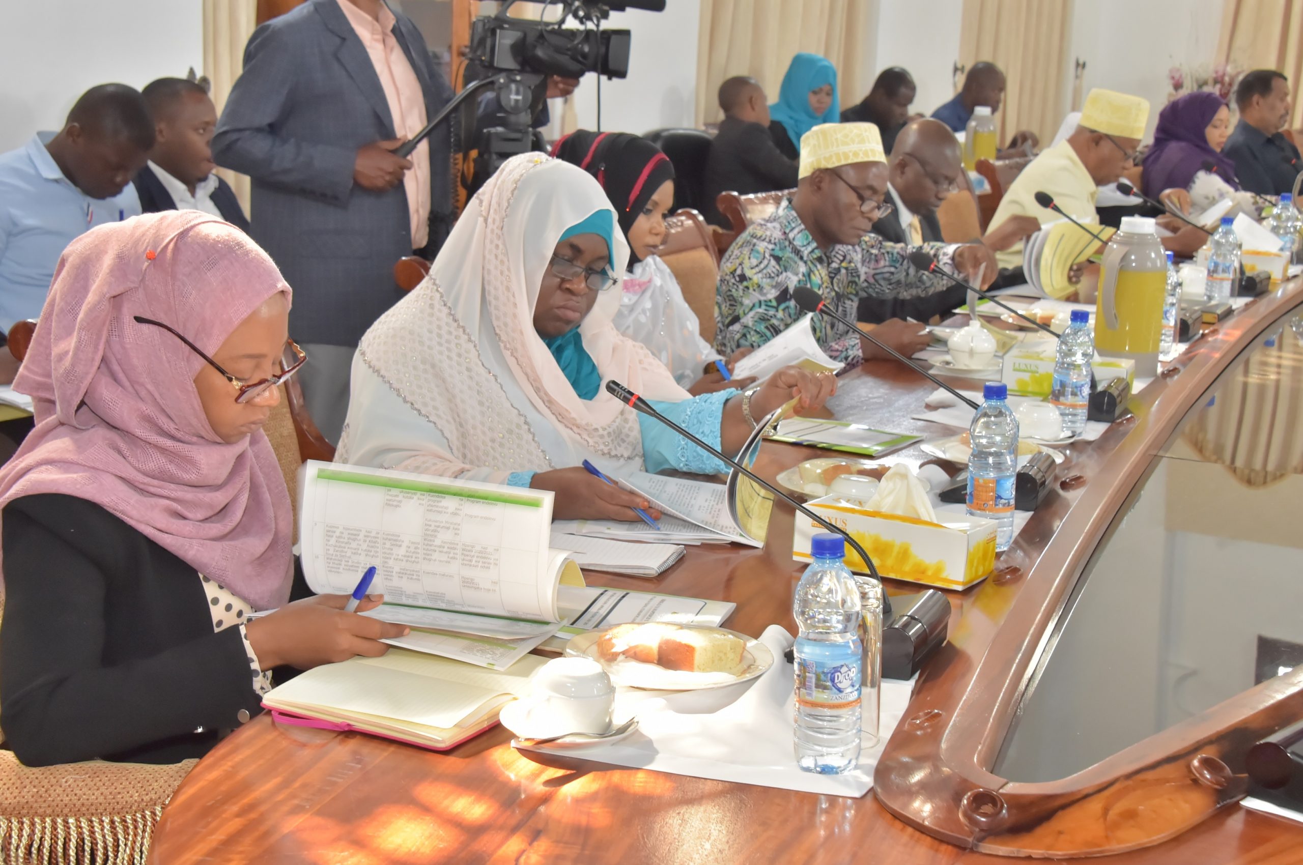 Maafisa katika Wizara ya Vijana,Utamaduni,Sanaa na Michezo wakiwa katika Kikao cha Utekelezaji Mpango kazi wa Mwaka 2020/2021 kilichofanyika leo katika Ukumbi wa Mikutano Ikulu Mjini Zanzibar chini ya Mwenyekiti wake Rais wa Zanzibar na Mwenyekiti wa Baraza la Mapinduzi Dk.Ali Mohamed Shein (hayupo pichani).[Picha na Ikulu] 11/08/2020.