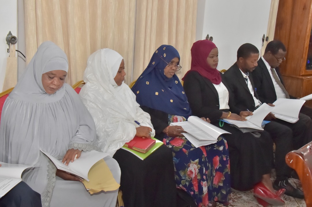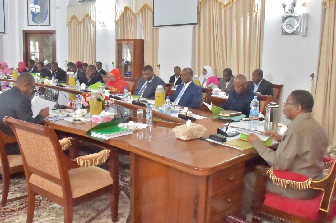 Viongozi katika Wizara ya Katiba na Sheria wakiwa katika Kikao cha Utekelezaji Mpango kazi wa Mwaka 2020/2021 kilichofanyika leo katika Ukumbi wa Mikutano Ikulu Mjini Zanzibar chini ya Mwenyekiti wake Rais wa Zanzibar na Mwenyekiti wa Baraza la Mapinduzi Dk.Ali Mohamed Shein (hayupo pichani).{Picha na Ikulu} 12/08/2020.