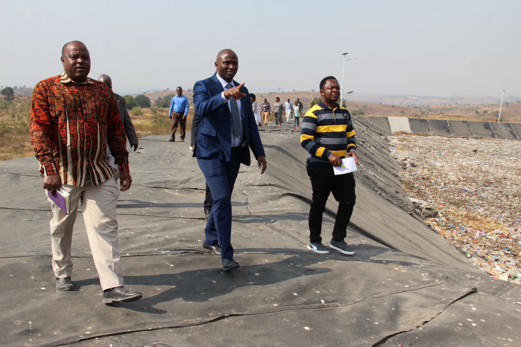 Naibu Waziri Ofisi ya Makamu wa Rais (Muungano na Mazingira) Mhe. Mussa Sima akitembela dampo la Nsagala lenye uwezo wa kuhudumia taka za Jiji la Mbeya kwa kipindi cha miaka 18.
