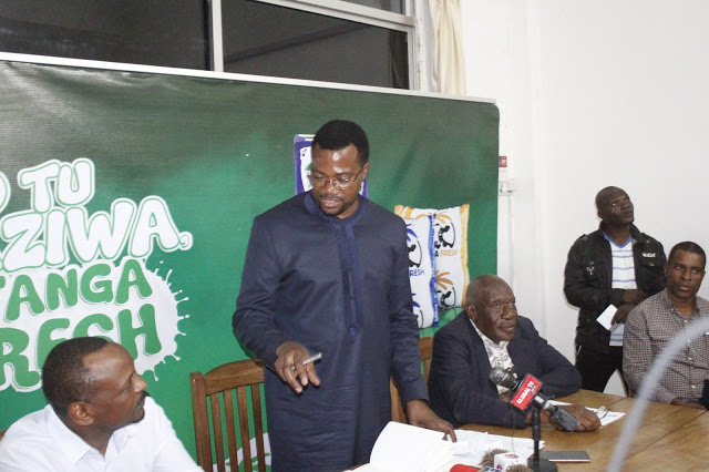 Tanga Freshi Jijini Tanga kushoto ni Mtendaji Mkuu wa Tanga Fresh