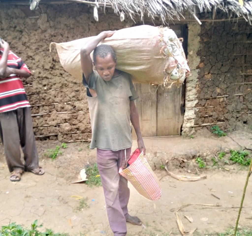 Mmoja wa kijana aliyekamatwa akituhumiwa kuwa mtumiaji maarufu wa pombe haramu aina ya gongo ,Abdulrazak Ismail akilazika kuhama katika kijiji hicho baada ya jamii kukosa imani naye wakidai amekuwa ni chanzo cha uvunjifu wa maadili.