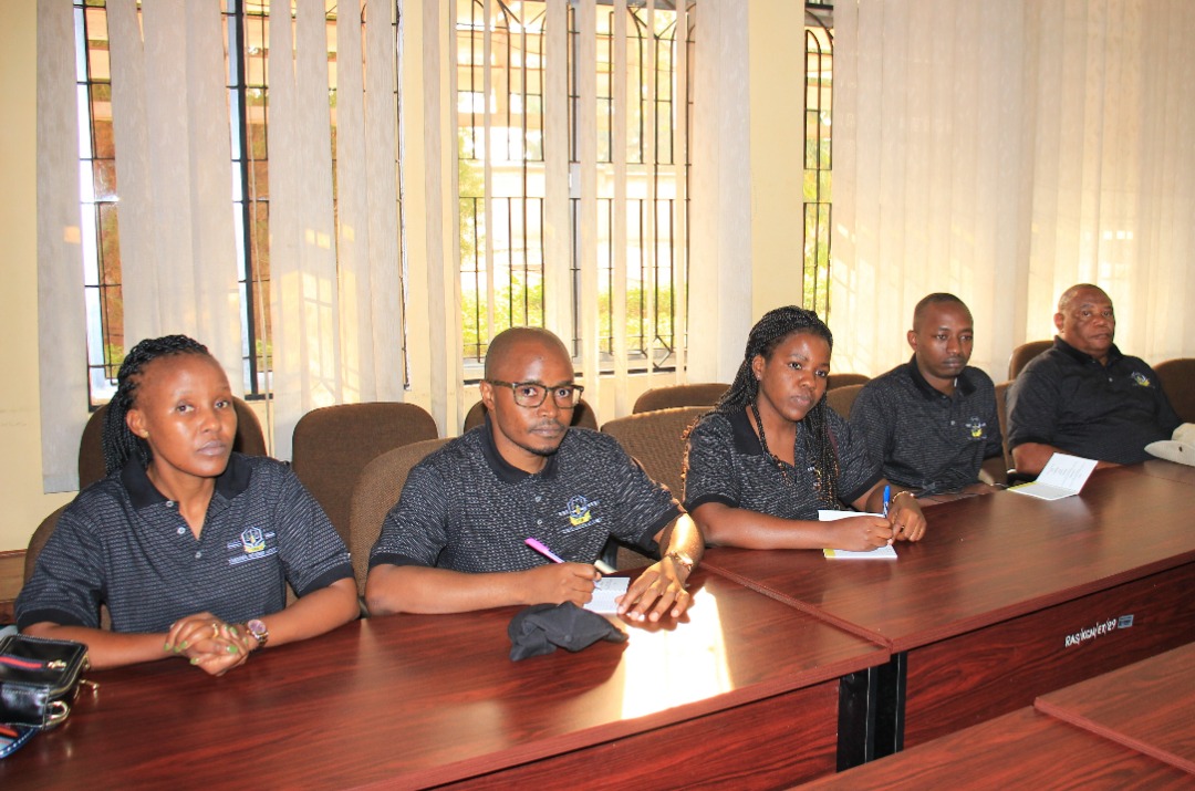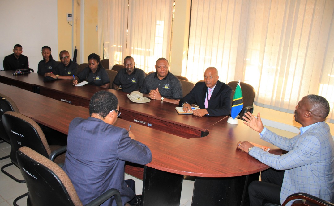 Maafisa wa Kampeni ya Utoaji Elimu kwa Mlipakodi kutoka Mamlaka ya Mapato Tanzania (TRA) wakiwa ndani ya ofisi ya Mkuu wa Mkoa wa Kigoma wakati walipomtembelea kwa ajili ya kujitambulisha kabla ya kuanza kwa zoezi la utoaji elimu kwa Mlipakodi (mlango kwa mlango) mkoani hapo.