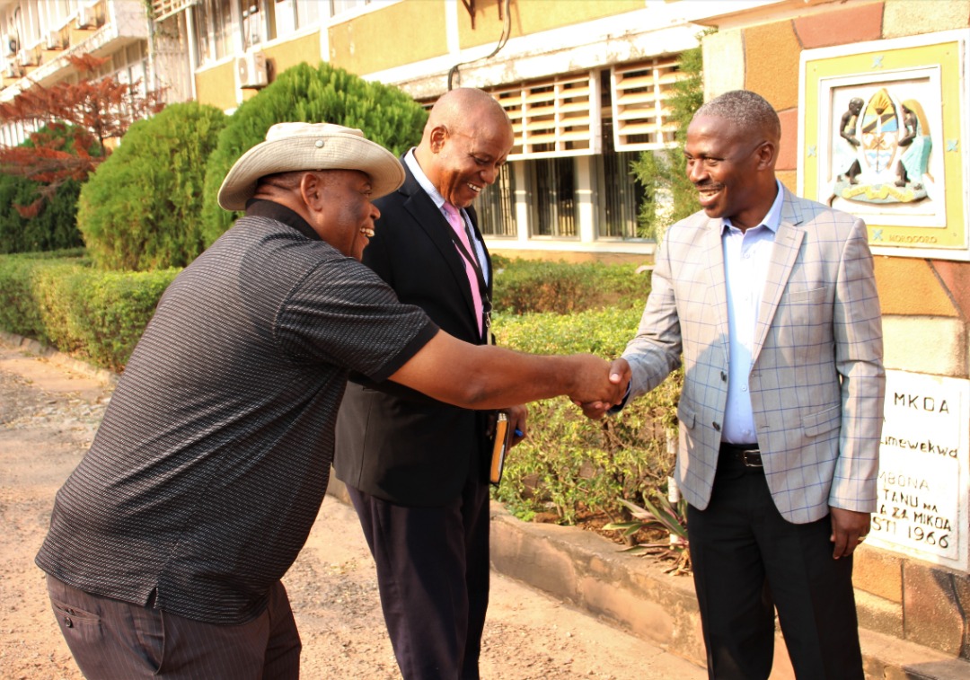 Mkuu wa Mkoa wa Kigoma, Mhe. Thobias Andengenye (kulia) akiagana na Kiongozi wa msafara wa timu ya Maafisa wa Mamlaka ya Mapato Tanzania (TRA), Bw. Julius Mjenga wakati walipomtembelea ofisini kwake ajili ya utambulisho kabla ya kuanza Kampeni ya kutoa elimu kwa Mlipakodi (mlango kwa mlango) mkoani hapo.