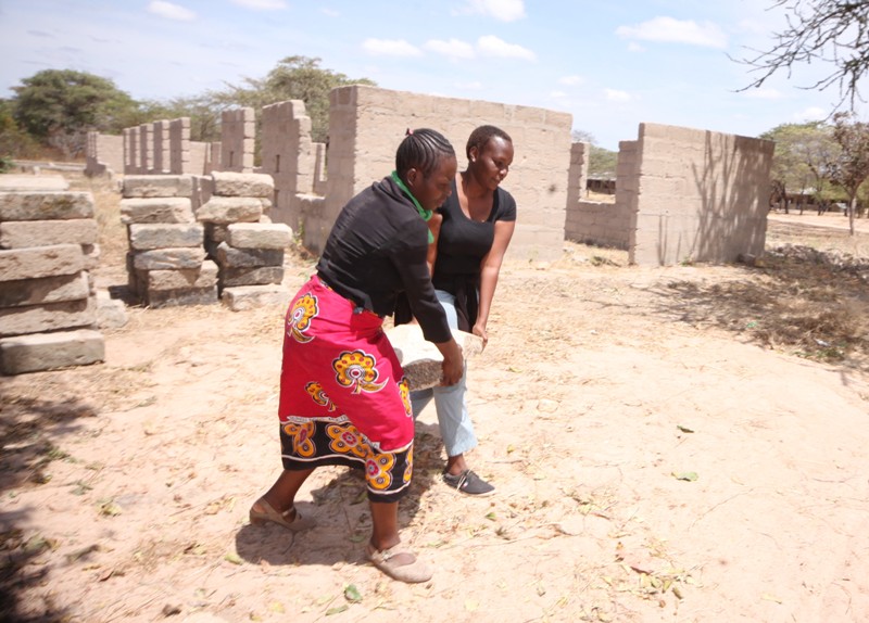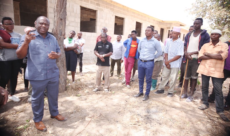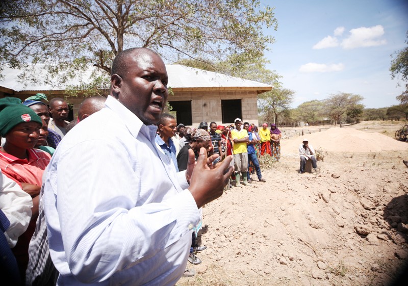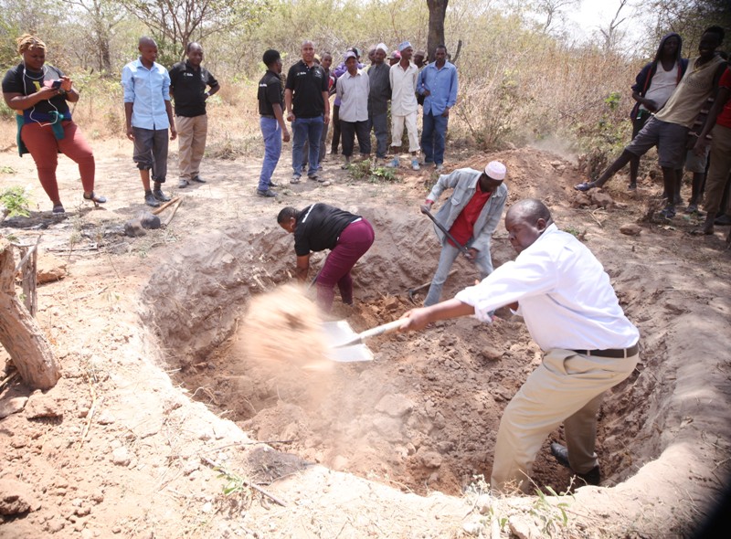 Mratibu wa Taifa wa TENMET, Bw. Ochola Wayoga (kulia) akiwaongoza wananchi walojitokeza kushiriki shughuli za ujenzi wa Bweni la Wanafunzi Sekondari ya Kwamtoro.