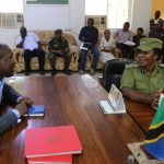 Naibu Waziri wa Maji Juma Aweso akisalimiana na Katibu Tawala Wilaya ya Nzega Onesmo Kisoka wakati wa ziara yake ya siku moja ya kufuatilia miradi ya maji iliyochini ya p4r.