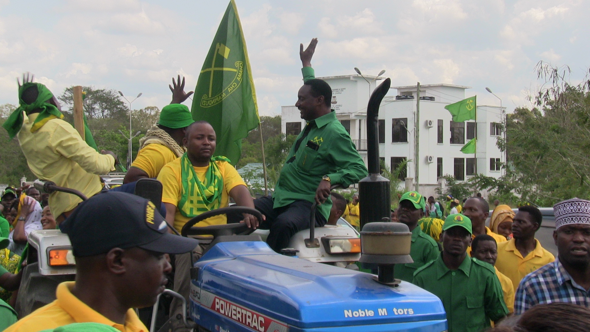 Koka akiwa kwenye gari aina ya Treka akiwapungiwa mkono wananchi na wanachama wa chama cha mapinduzi CCM, waliojitokeza kwa ajili ya kwenda kumsindikiza kuchukua fomu ya ubunge katika ofisi za mkurugenzi wa uchaguzi.