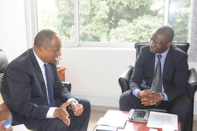 Mkurugenzi Mtendaji wa Bodi ya Mikopo ya Wanafunzi wa Elimu ya Juu (HESLB) Abdul- Razaq Badru (kulia) akimsikiliza Mkurugenzi wa Muungano kutoka Ofisi ya Makamu wa Rais (OMR) Balozi Mbarouk Nassor Mbarouk (kushoto) wakati alipofika katika Ofisi za HESLB Jijini Dar es Salaam jana (Agosti 20, 2020) akiwa katika ziara ya kikazi katika taasisi zinazohudumia pande mbili za Muungano, Tanzania Bara na Zanzibar.