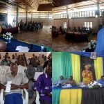 Mkurugenzi Mtendaji wa Bodi ya Mikopo ya Wanafunzi wa Elimu ya Juu (HESLB) Abdul- Razaq Badru (katikati) akifurahia jambo na Mkurugenzi wa Muungano kutoka Ofisi ya Makamu wa Rais (OMR) Balozi Mbarouk Nassor Mbarouk (kushoto) aliyefika katika Ofisi za HESLB Jijini Dar es Salaam jana (Agosti 20, 2020) akiwa katika ziara ya kikazi katika taasisi zinazohudumia pande mbili za Muungano, Tanzania Bara na Zanzibar. Kulia (koti jeupe) ni Mkuu wa Mawasiliano HESLB, Omega Ngole.(PICHA NA HESLB)