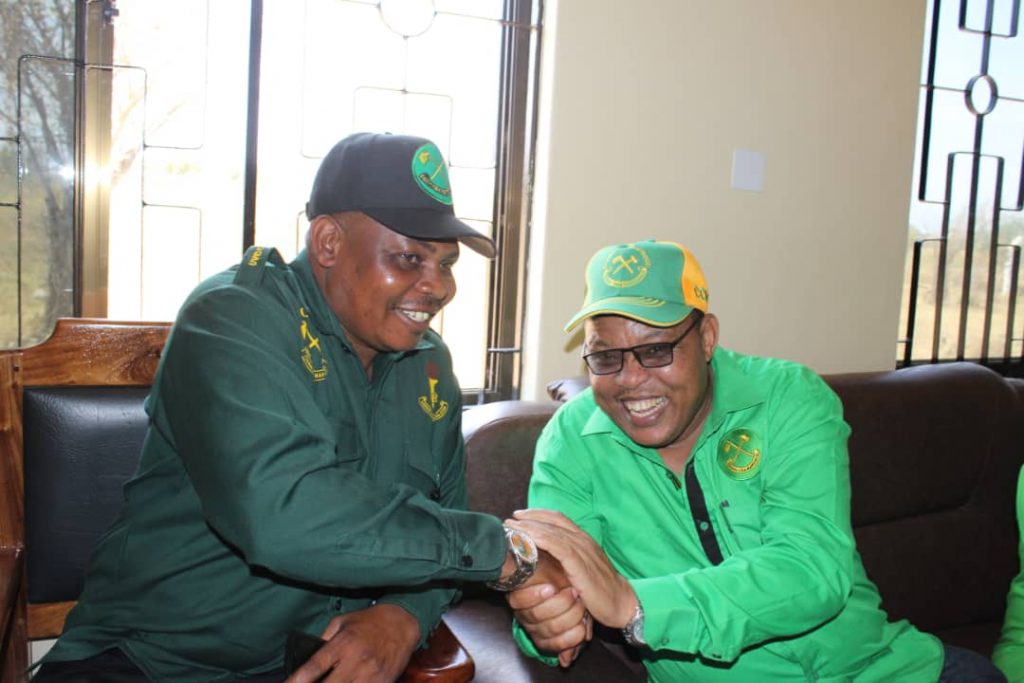 Mgombea ubunge wa Jimbo la Singida Mashariki Miraji Mtaturu akiwa na Mwenyekiti wa Ccm wilaya Mika Likapakapa