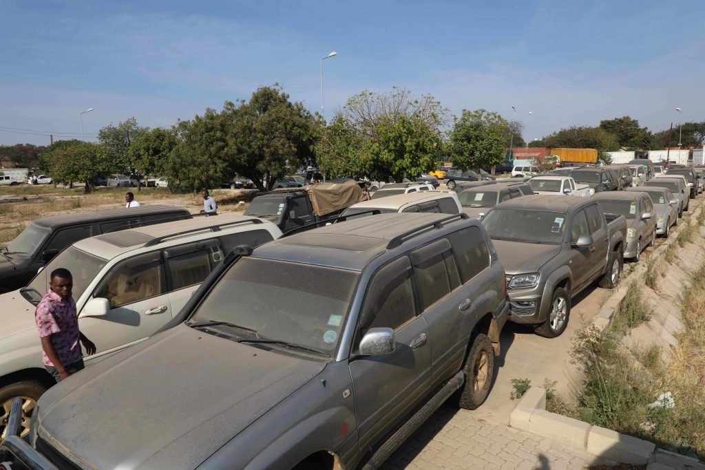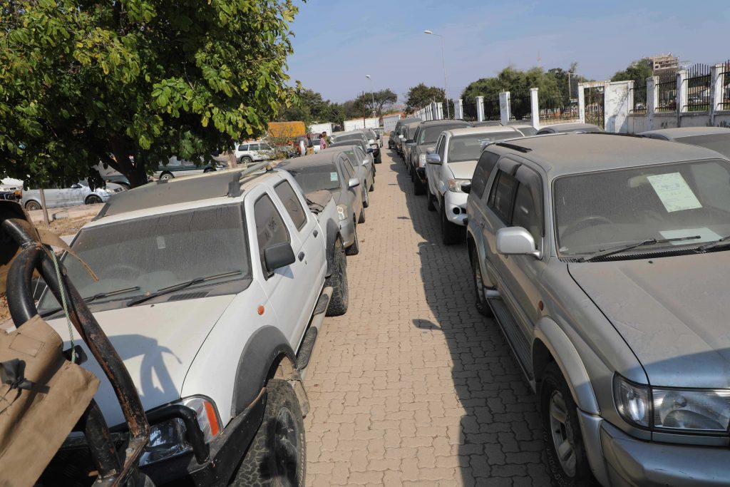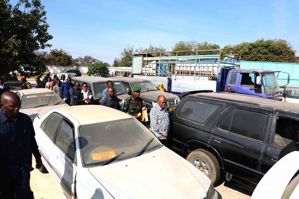 Sehemu ya magari makubwa na madogo 130 yaliyotaifishwa baada ya kuhusika katika matukio mbalimbali ya uhujumu yakiwa yamehifadhiwa katika kituo cha mabasi cha zamani jijini Dodoma yaliyokaguliwa na Rais wa Jamhuri ya Muungano wa Tanzania Dkt. John Pombe Magufuli