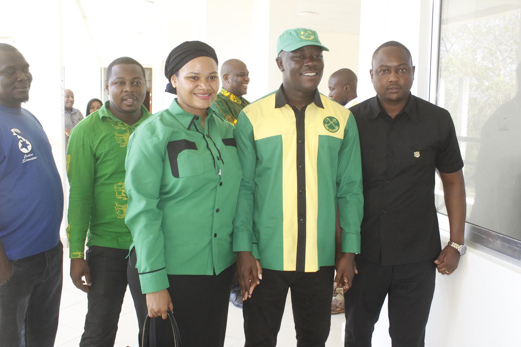 MGOMBEA Ubunge Jimbo la Pangani (CCM) Jumaa Aweso ambaye pia ni naibu Waziri wa Maji katika akiwa na kada wa CCM Victoria Mwanziva kushoto na kulia ni Afisa wa Serikali za Mitaa Mkoa wa Tanga Gipson George mara baada ya kurejesha