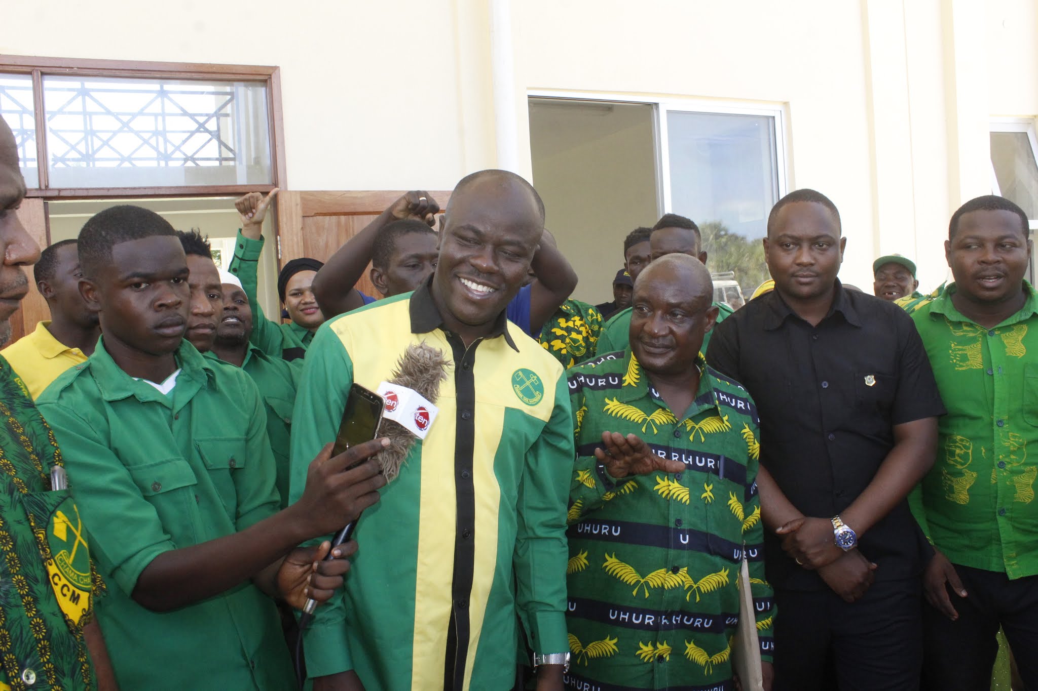 Maji kulia akizirejesha fomu za kuwania kiti hicho leo kwa msimamizi