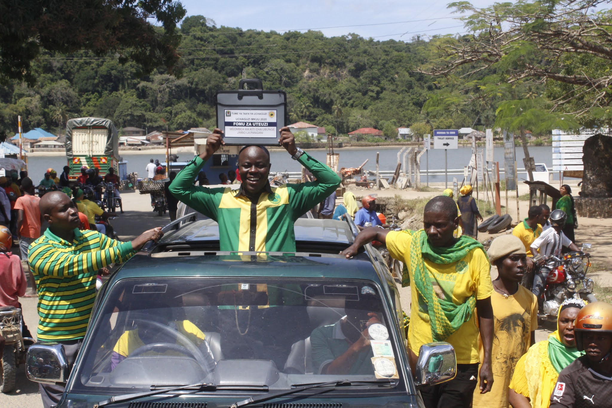 MGOMBEA Ubunge Jimbo la Pangani (CCM) Jumaa Aweso akiwa amebeba fomu za kuwania Ubunge Jimbo hilo akiwa njiani kuzirudisha ofisi ya Msimamizi wa Uchaguzi kwenye Jimbo hilo mapema leo |