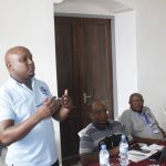 Katibu Mkuu wa Wizara ya Mambo ya Nje na Ushirikiano wa Afrika Mashariki Balozi Brigedia Jenerali Wilbert Ibuge na Naibu Katibu Mkuu wa Jumuiya ya Afrika Mashariki anayeshughulikia masuala ya Mipango, Miundombinu, Fedha na Utawala Eng. Steven Mlote wakiwa katika mazungumzo. Wengine kutoka kulia ni Balozi Stephen P. Mbundi Mkurugenzi wa Siasa, Ulinzi na Usalama na Hangi Mgaka, Afisa Mambo ya Nje