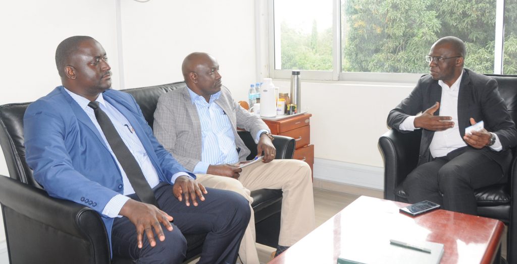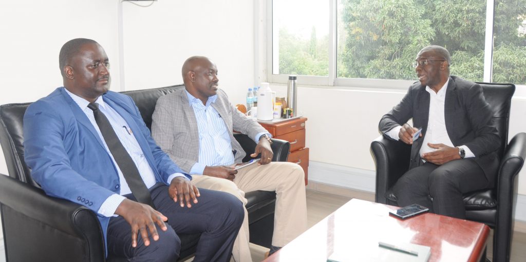 Abdul-Razaq Badru (kulia) akizungumza na Watendaji wa Mfuko wa Taifa wa Bima ya Afya (NHIF) akiwemo Mkurugenzi wa Huduma kwa Wanachama, Christopher Mapunda (katikati) na Meneja Masoko na Huduma kwa wateja, Hipoliti Lello (kulia) wakati walipofika kujitambulisha Ofisini kwake Jijini Dar es Salaam