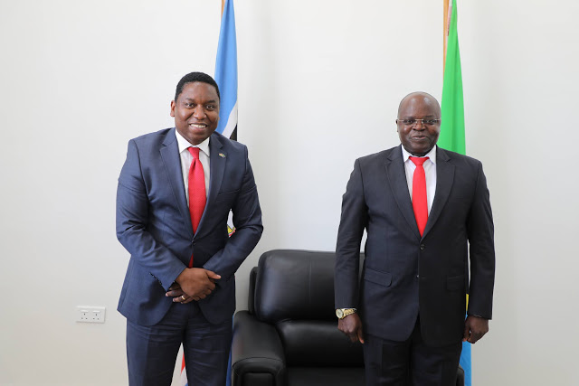 | Katibu Mkuu wa Wizara ya Mambo ya Nje na Ushirikiano wa Afrika Mashariki, Balozi Brigedia Generali Wilbert A. Ibuge akifafanua jambo wakati wa mazungumzo kati yake na Balozi wa Kenya nchini, Mhe. Dan Kazungu |