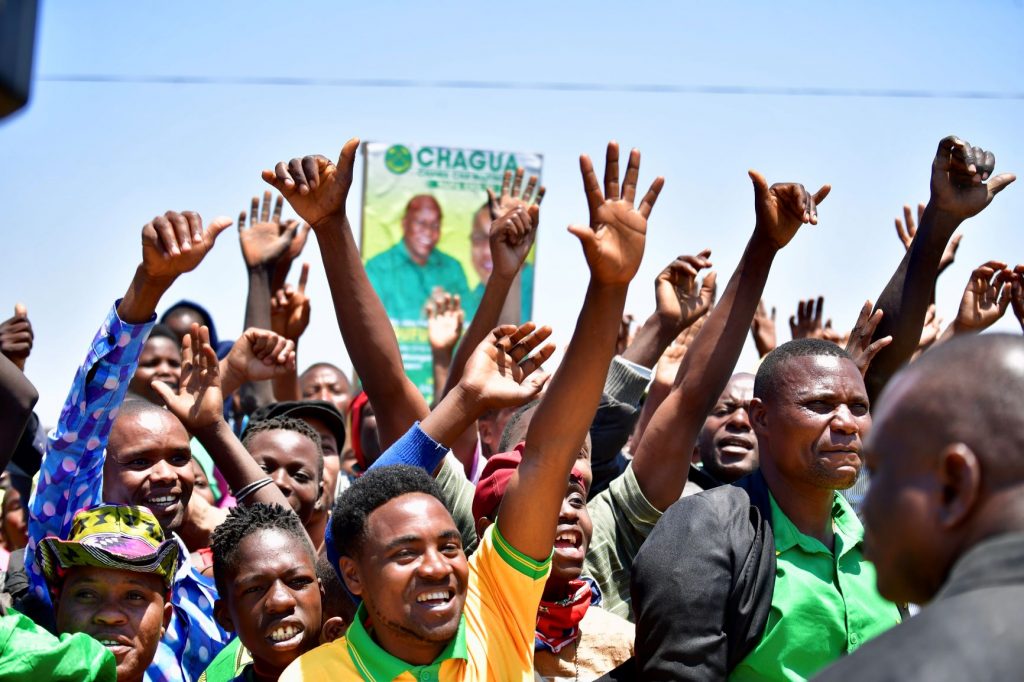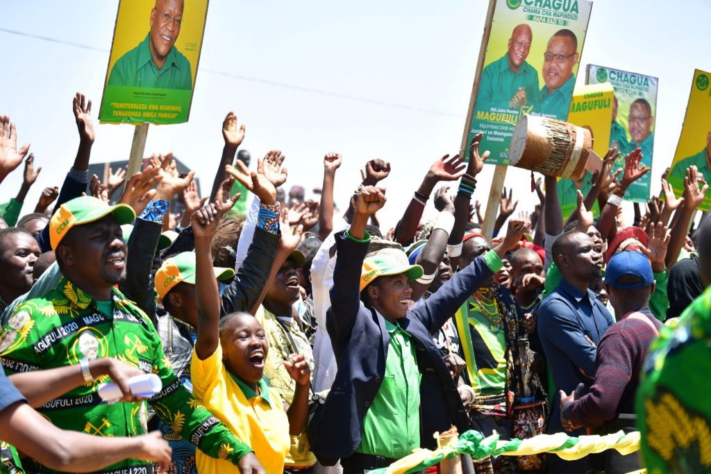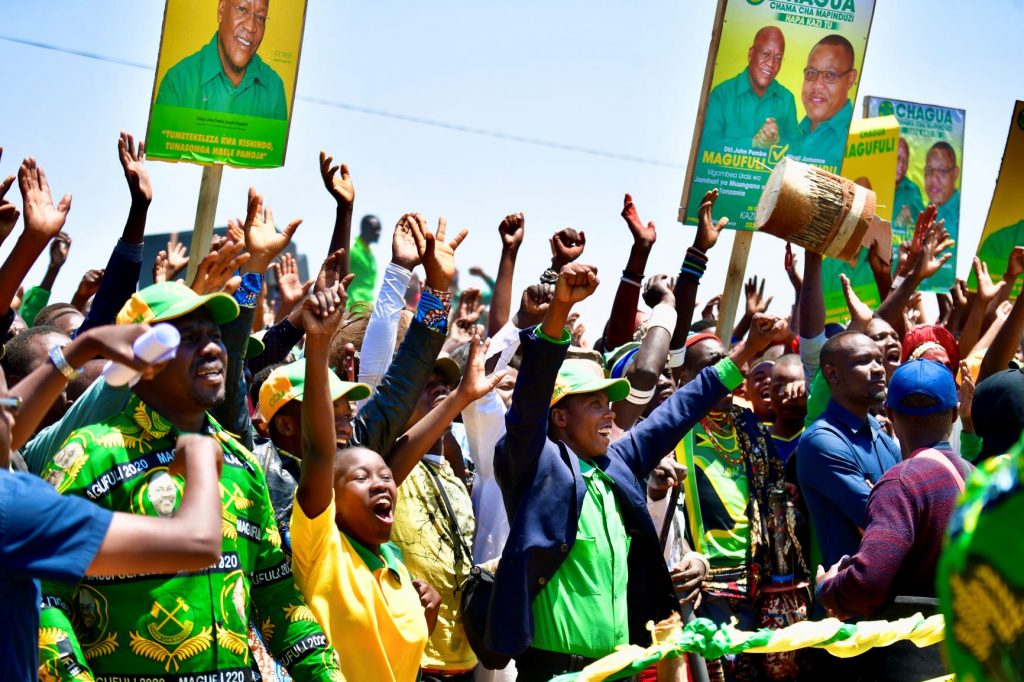 Wananchi wa Ikungi mkoani Singida wakimshangilia Mgombea Urais kupitia Chama cha Mapinduzi CCM, Rais wa Jamhuri ya Muungano wa Tanzania Mheshimiwa Dkt. John Pombe Magufuli alipowasili wakati akitokea Wilaya ya Bahi kwenye Mikutano ya Kampeni za Urais.
