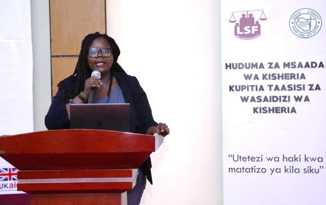 Meneja Mawasiliano wa LSF, Jane Matinde akizungumza jambo mbele ya wageni waalikwa katika kikao kazi hicho kilichofanyika ndani ya jiji la Dodoma.