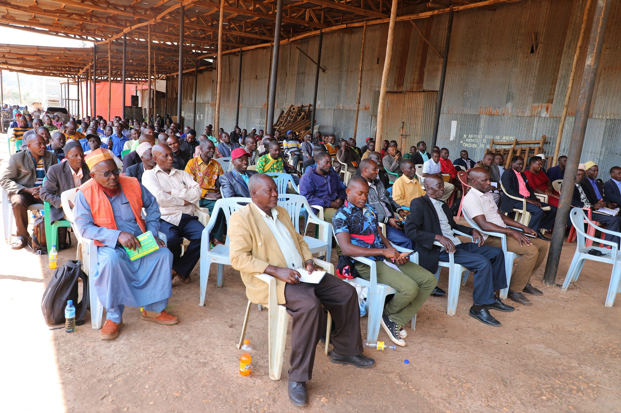 Viongozi wa Vyama vya Ushirika wa Wilaya ya Karagwe na Kyerwa wakimsikiliza Waziri wa Kilimo Japhet Hasunga wakati akizungumza kwenye mkutano uliofanyika Mjini Karagwe wakati akiwa katika ziara ya kikazi Mkoani Kagera Leo tarehe 3 Septemba 2020.