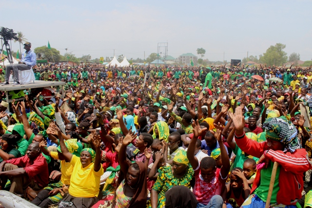 Mwita Waitara Mgombea Ubunge jimbo la Tarime kupitia Chama cha Mapinduzi CCM akiomba kura za Rais, Wabunge na Madiwani katika mkutano wa hadhara uliofanyika kwenye uwanja wa Mkendo mjini Musoma.